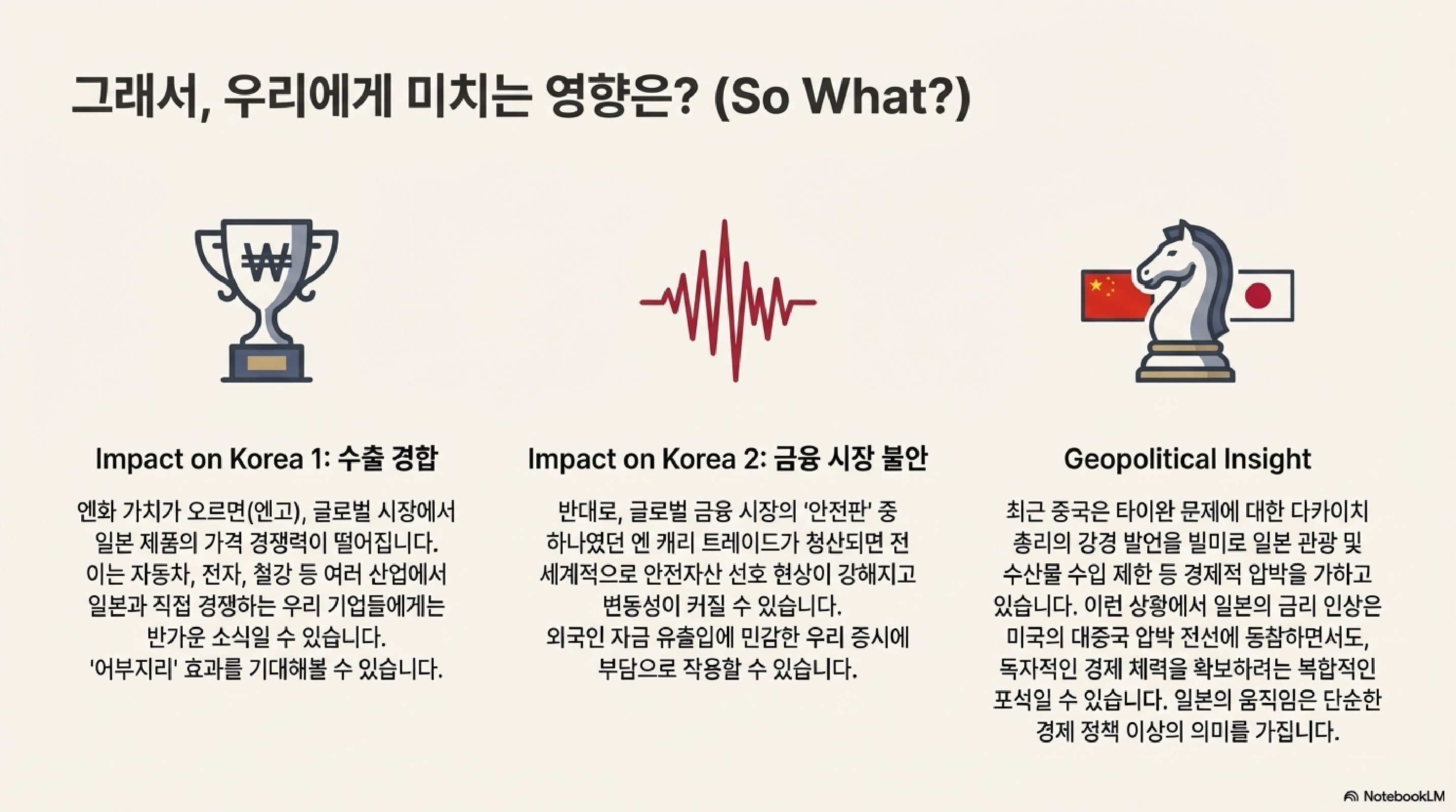 이것은 단순히 한 국가의 통화정책 변화가 아닙니다. 지난 수십 년간 이어져 온 초저금리 시대의 종말을 알리는 신호탄일 수 있으며, '엔 캐리 트레이드'로 대표되는 글로벌 자금 흐름의 근본적인 판을 뒤흔들 수 있다는 점에서 엄청난 전략적 중요성을 가집니다.