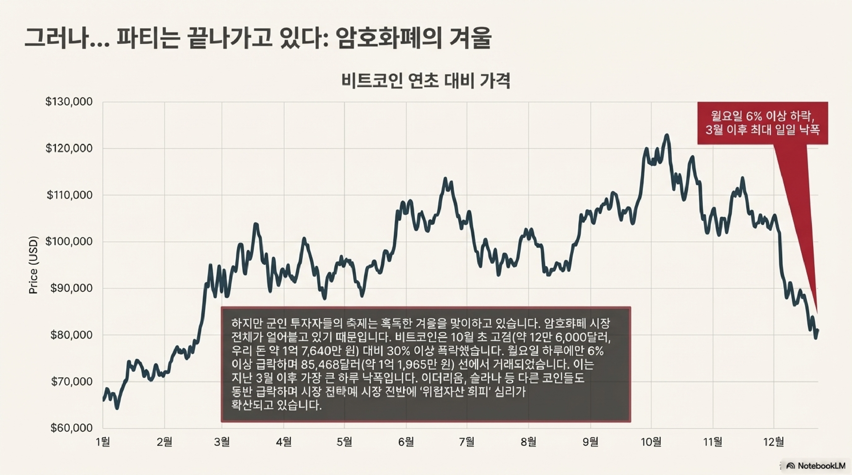 과거에도 몇 차례 '크립토 윈터'라 불리는 혹독한 하락장이 있었습니다. 하지만 이번 겨울은 뭔가 다릅니다.