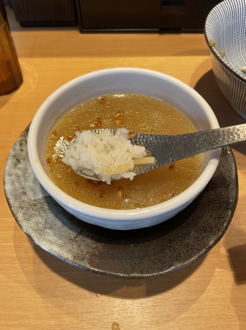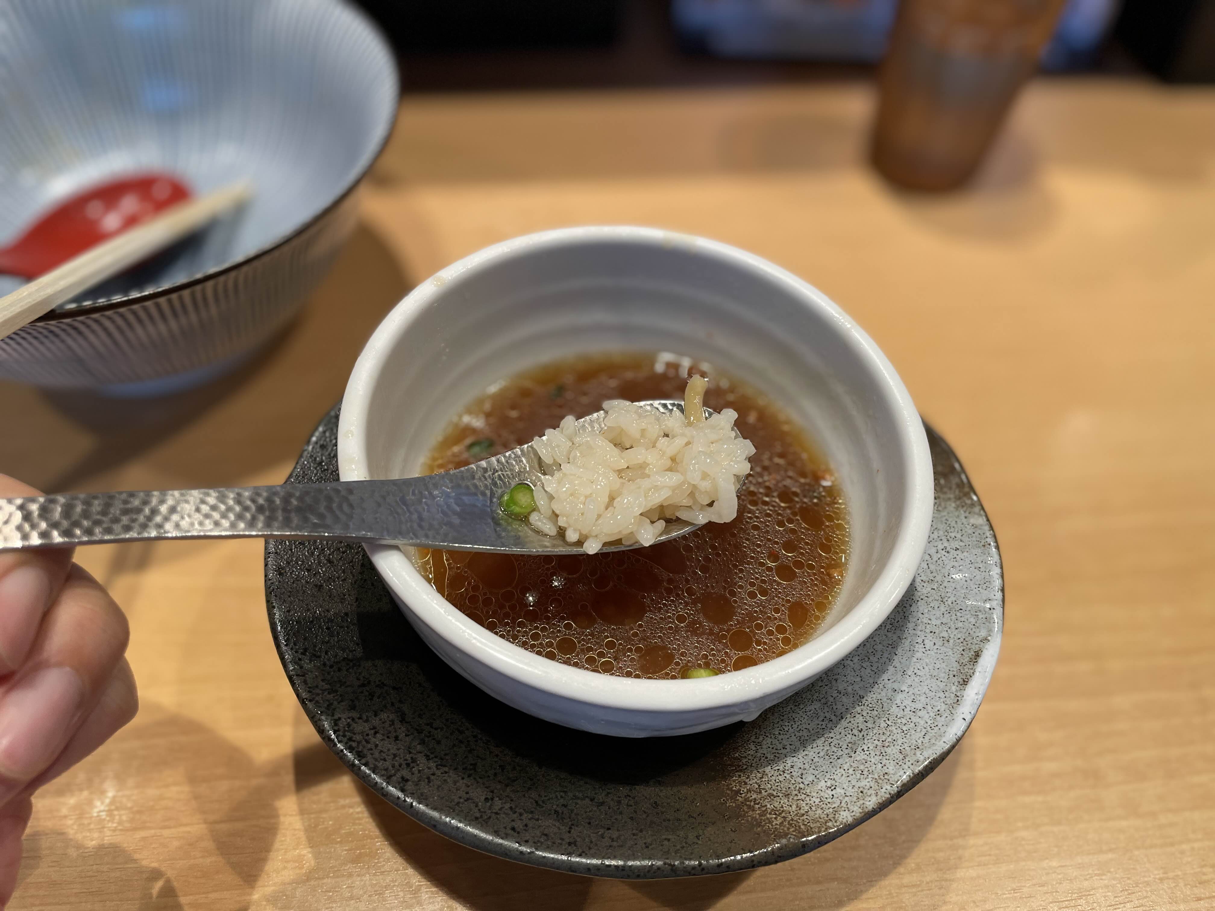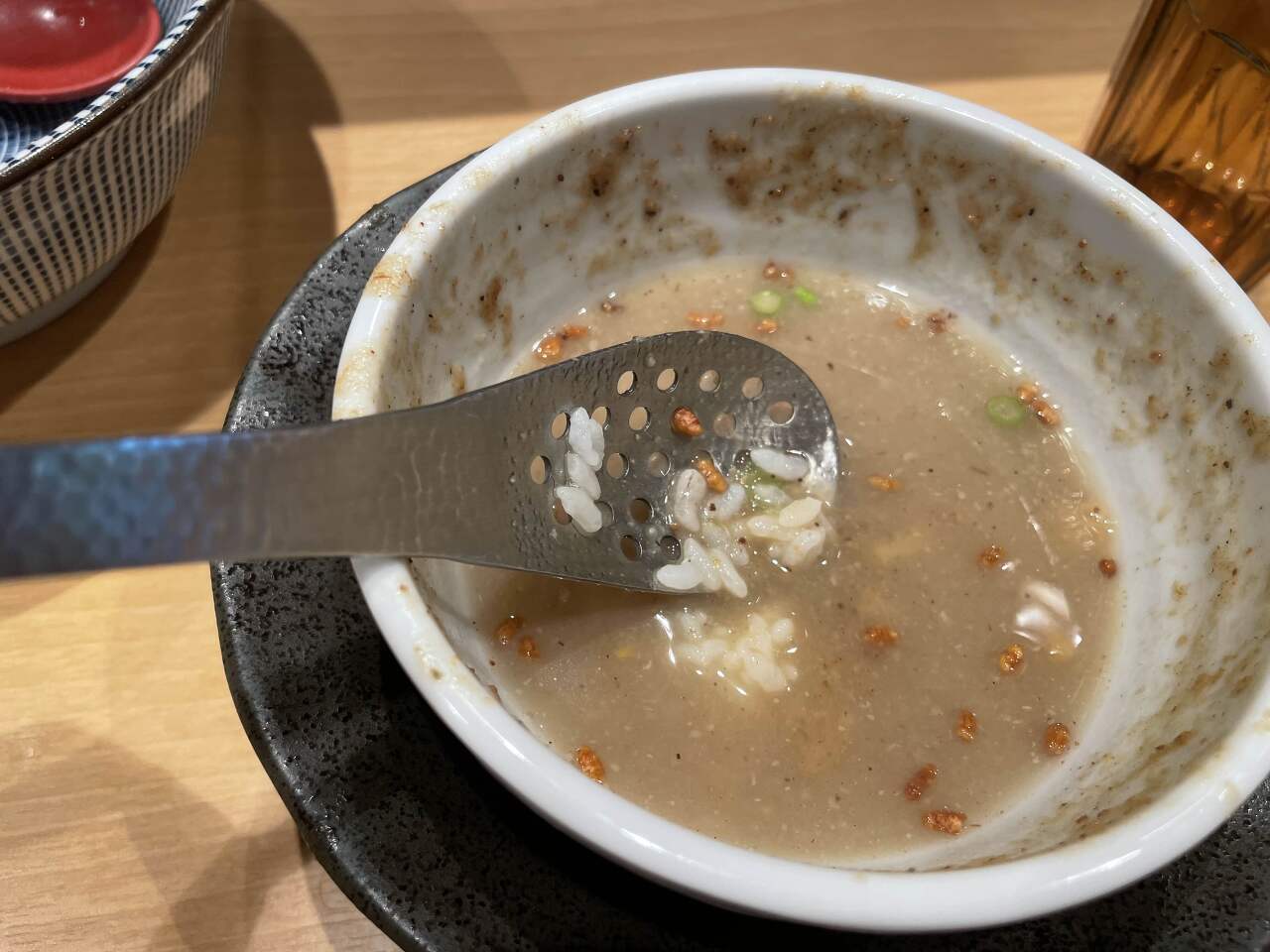 4. 면을 다 먹으면 점원에게 '스프와라'를 부탁한다 - 서비스 밥도 있습니다