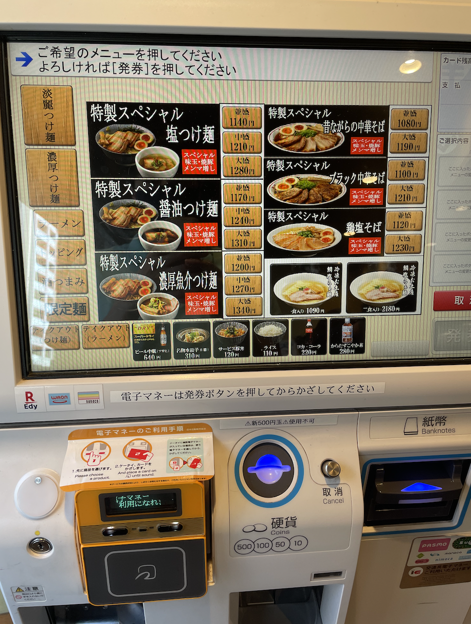 여기서 밀고 있는 삼총사가 시오, 쇼유, 어개 츠케멘이니까 안먹어본 쇼유 중자로 1,350엔으로 스페셜로 주문했따