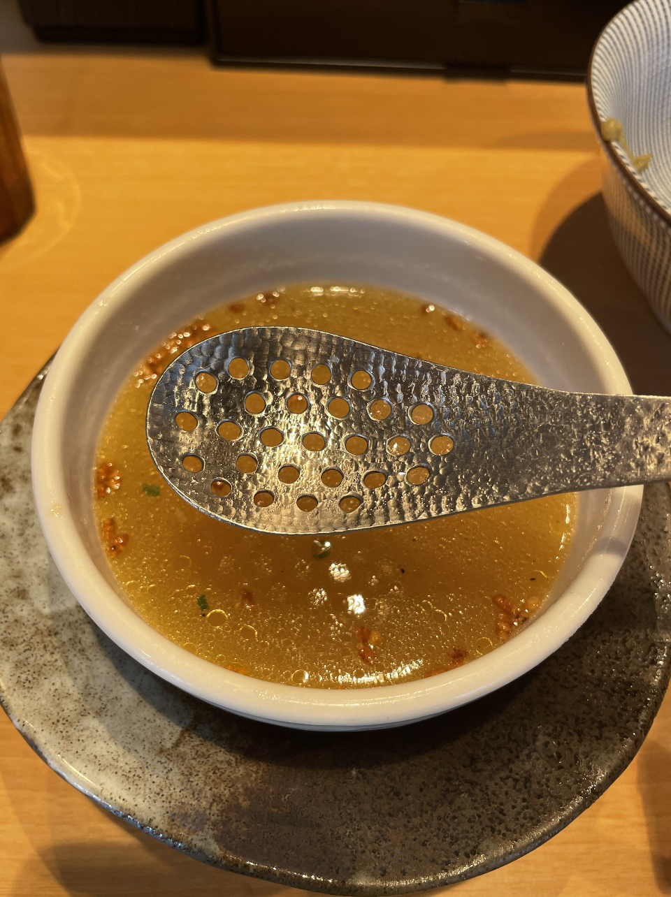 국물이 매우 신기했는데 등장부터 약간 맑은 색의 국물이다.