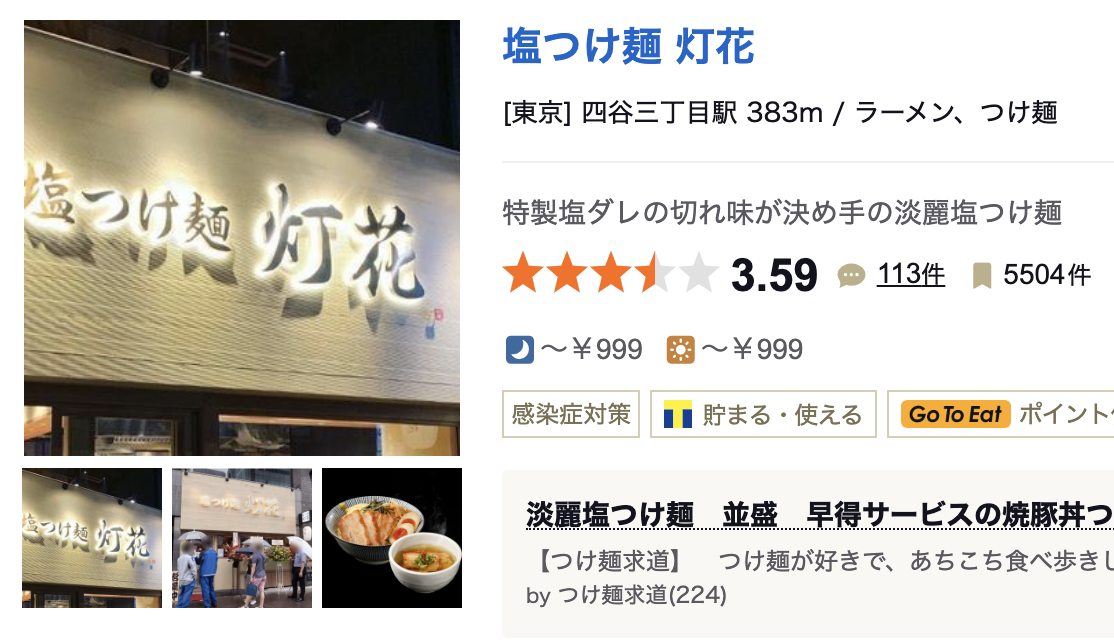 塩つけ麺 灯花 (四谷三丁目/ラーメン)