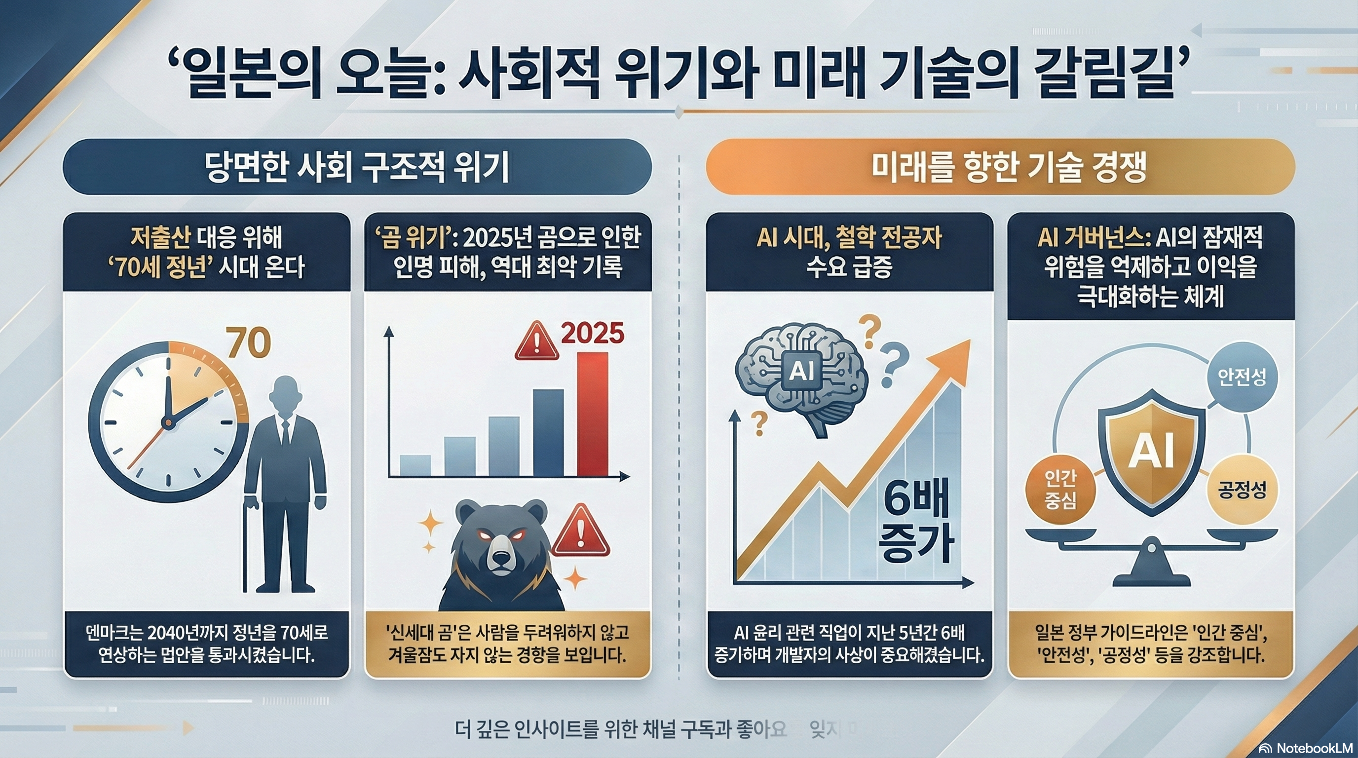 오늘도 잠잠할 날 없는 일본 열도에서 정신 번쩍 들게 하는 소식들을 한가득 들고 왔습니다. 인공지능이 코딩 전문가가 아니라 철학자를 모셔가는 기막힌 현실부터, 겨울잠 파업에 돌입한 신세대 곰들의 반란, 동중국해 상공에서 펼쳐진 아슬아슬한 군사적 눈치 게임, 그리고 누구는 명품 매장 오픈런을 하고 누구는 반값 세일만 기다리는 일본 경제의 두 얼굴까지. 오늘도 정신없는 일본 경제 소식을 심층 분석해 보겠습니다.
