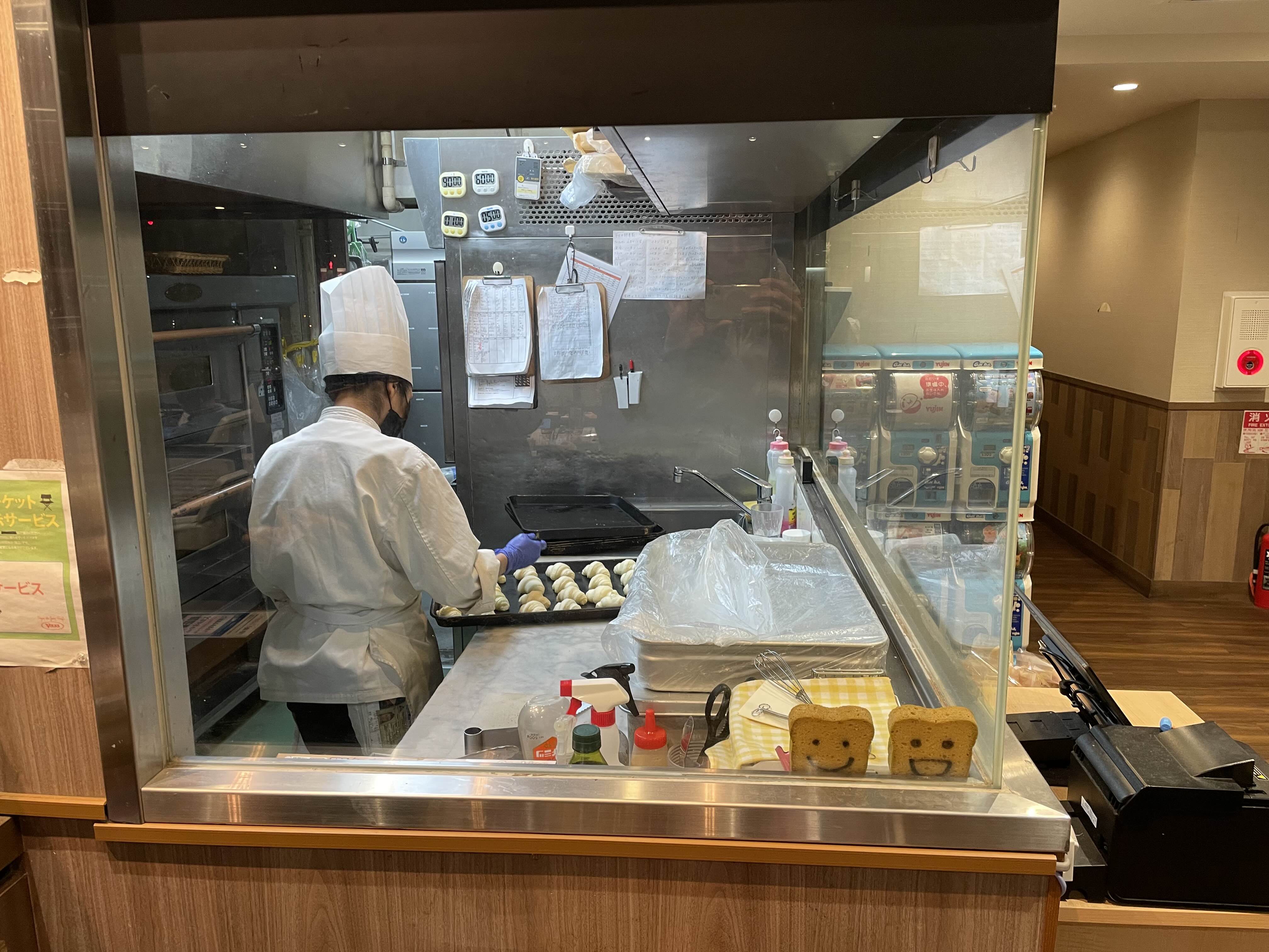 나가는 길에 보니까 빵 굽는 모습을 보여주고 있었다