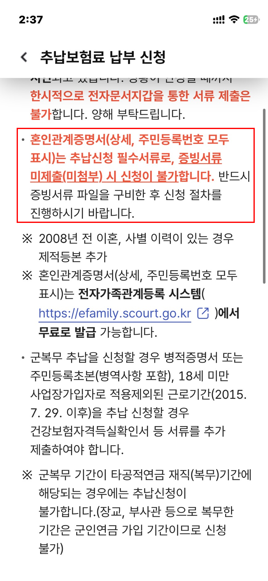 그리고 혼인관계증명서가 반드시 상세 주민번호 모두 표시로 필수 제출이 되어야한다고 한다..
