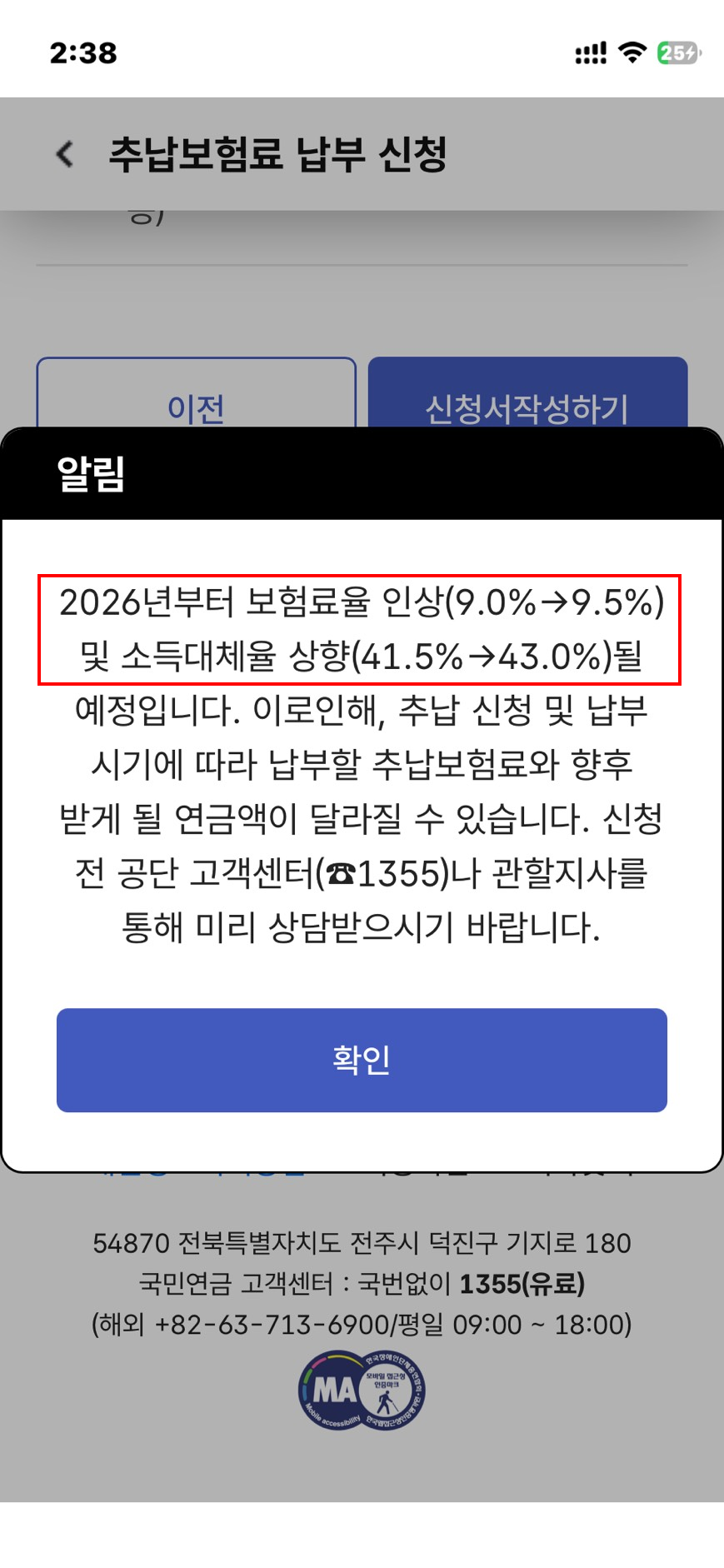 추납 보험료는 '신청 시점'의 보험료율을 따르기 때문입니다.