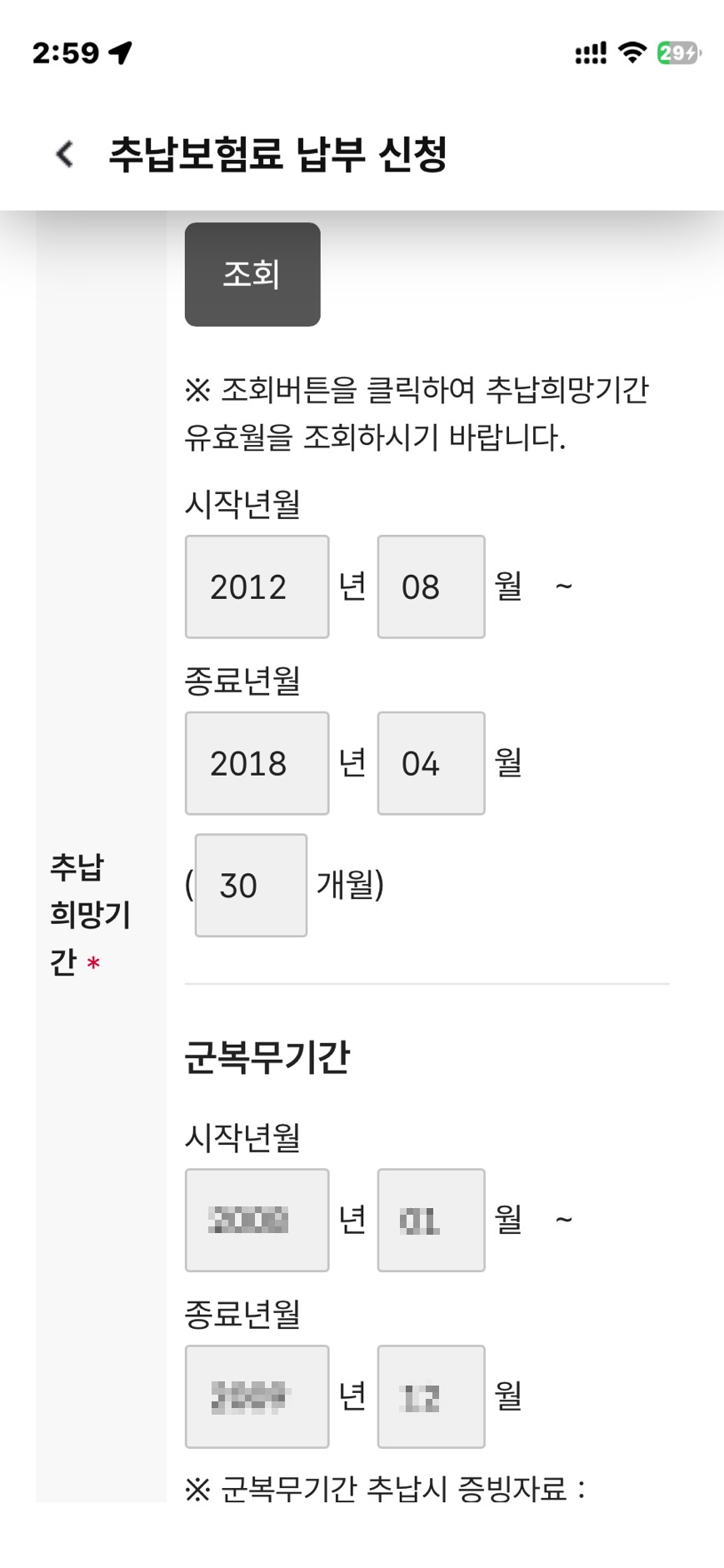 나 같은 경우는 아마도 인턴 할 때인가 싶긴 한데 6개월이 추납 가능기간으로 나왔다
