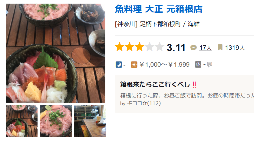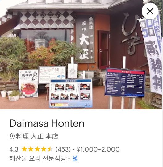 - 위치 및 가성비: 하코네 아시노코 호수 근처에 위치해 접근성이 좋으며, 물가가 비싼 관광지임에도 1~2천 엔대의 합리적인 가격으로 운영되는 가성비 훌륭한 식당입니다.