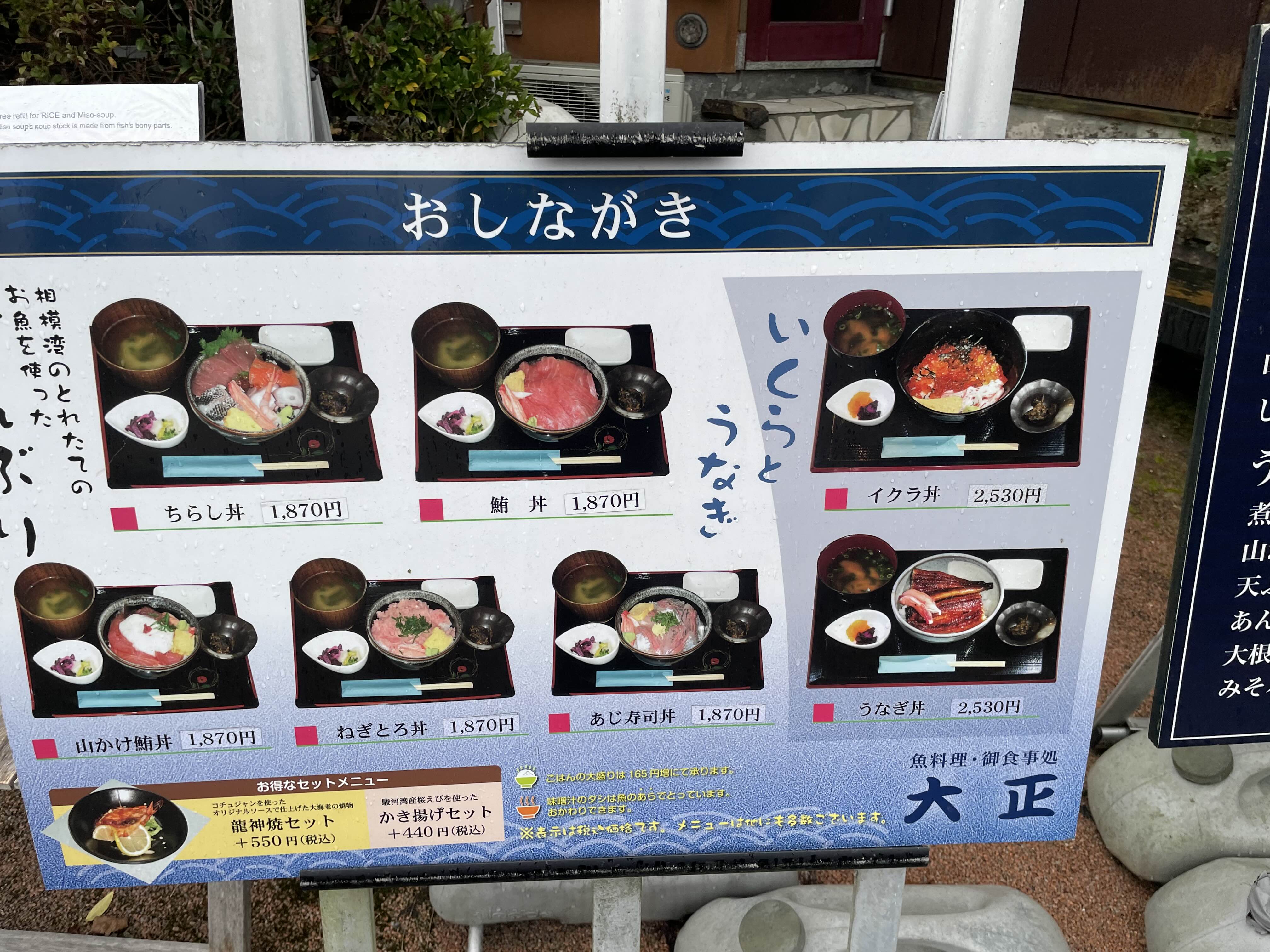 - 대표 메뉴: 인근 오다와라 항구에서 직송한 신선한 해산물을 사용하며, 특히 두툼한 회가 올라간 '카이센동(해산물 덮밥)'과 '장어덮밥'이 한국인 입맛에도 잘 맞는 인기 메뉴입니다.
