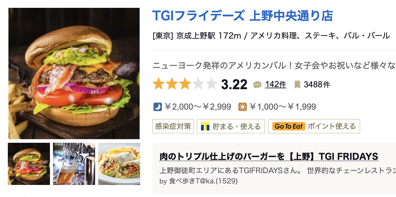 우에노 공원 입구에서 바로 보이는 곳에 위치한 TGI