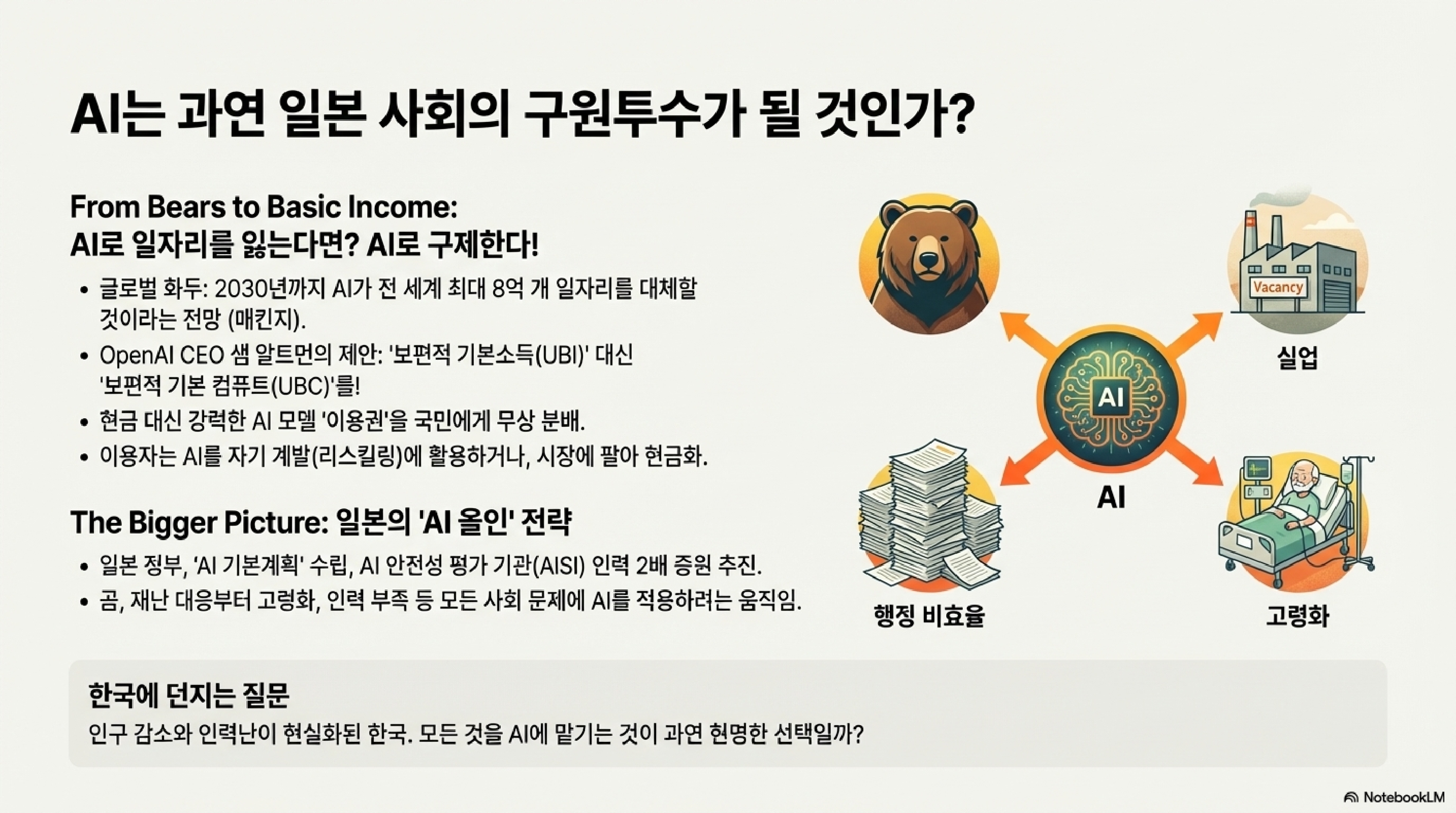 오늘도 흥미진진한 일본 경제 소식 세 가지, 아니 네 가지를 준비했습니다. 첫 번째, 일본 정부가 기업들에게 "제발 돈 좀 쓰세요"라며 역대급 당근을 던졌는데, 과연 말들이 달릴지, 아니면 당근만 먹고 튈지 한 번 파헤쳐 보겠습니다. 그리고 홋카이도에서는 반도체 공장을 유치하기 위해 '원자력'이라는 금단의 카드를 다시 꺼내 들었는데요, 과연 이 도박은 성공할 수 있을까요? 마지막으로 AI가 우리 일자리를 8억 개나 빼앗아갈 미래에, 현금 대신 'AI 이용권'을 나눠주자는 기상천외한 아이디어까지! 여기에 더해 호주에서 시작된 '16세 미만 SNS 금지'라는 대실험이 우리 사회에 던지는 질문까지, 오늘 알차게 준비했으니 채널 고정해 주십시오!