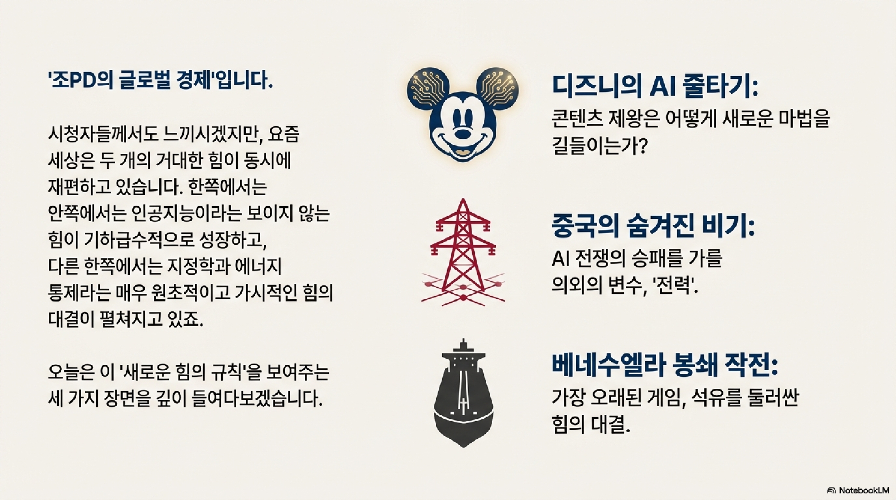 조PD의 글로벌 경제: AI 패권 전쟁, 디즈니의 줄타기, 그리고 잠 못 드는 당신을 위한 머더쇼