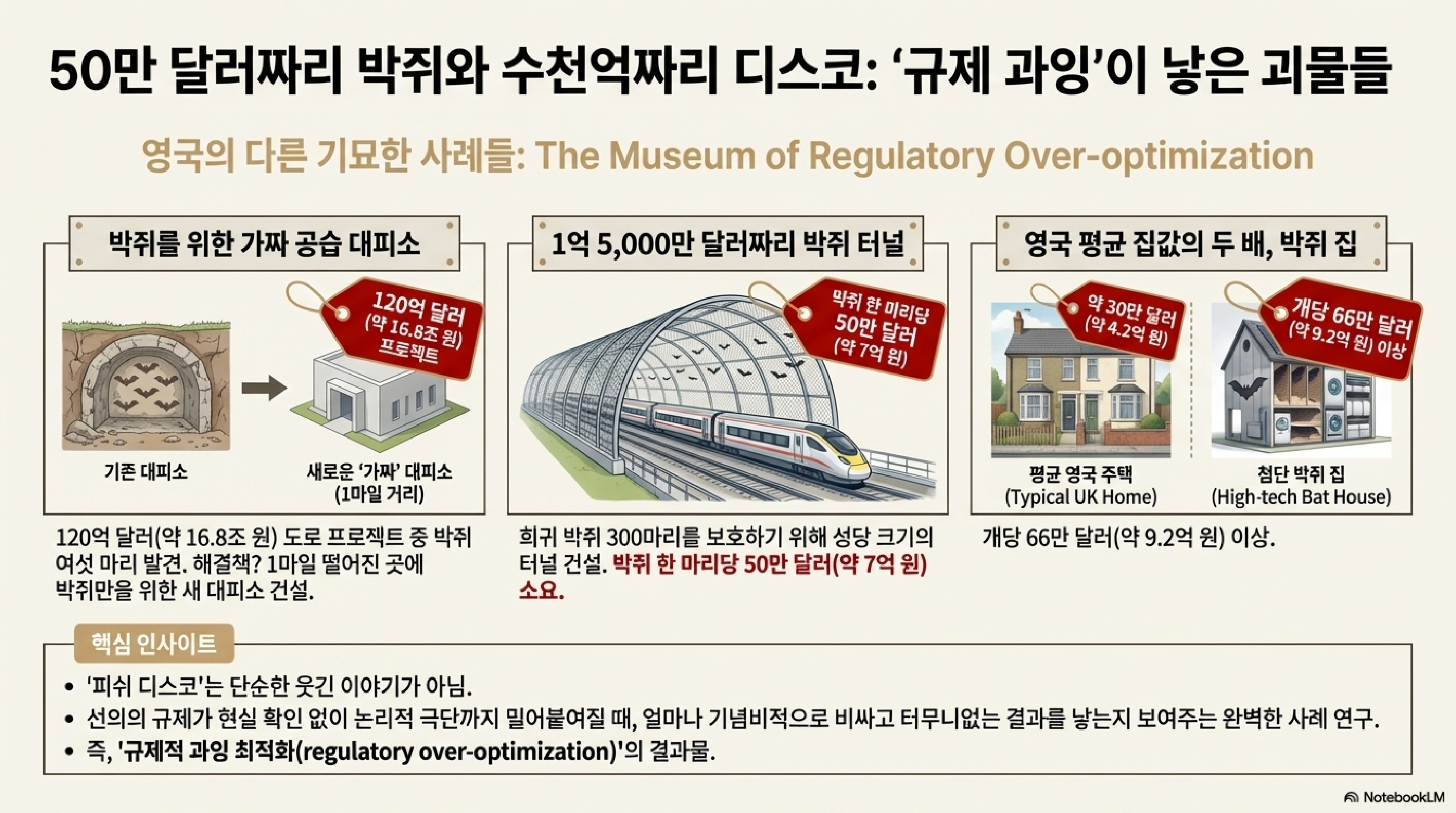 이것이 바로 거대 공공 프로젝트가 어떻게 배보다 배꼽이 더 커질 수 있는지, 그리고 선한 의도의 환경 규제가 현실과 동떨어져 얼마나 부조리한 결과를 낳을 수 있는지를 보여주는 생생한 사례입니다. **"세금이라는 것이 이렇게 재미있게 쓰일 수도 있다"**는 씁쓸한 농담으로 마무리하고 싶네요.