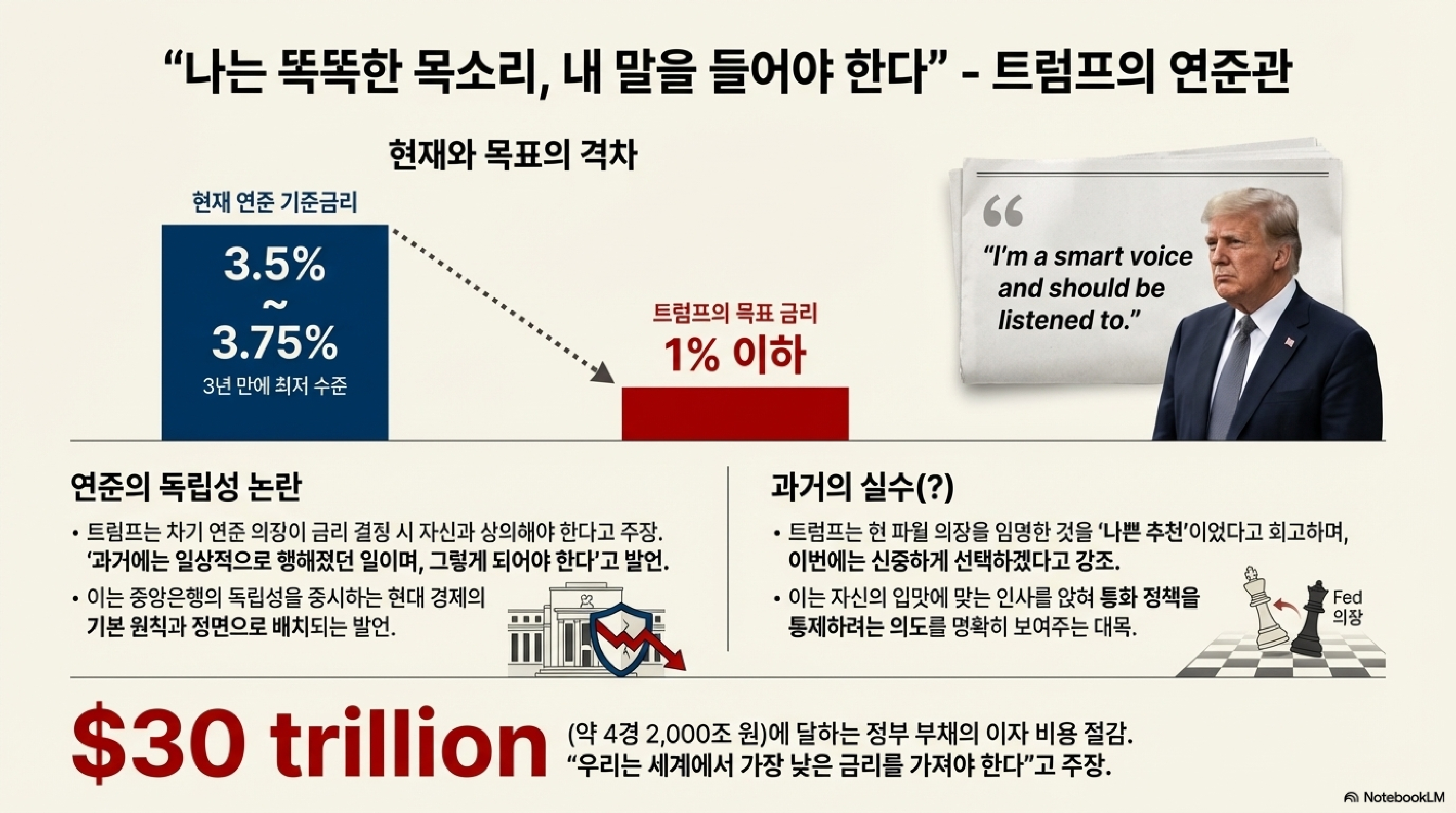 그런데 진짜 문제는 트럼프 대통령의 노골적인 금리 인하 요구입니다. 그의 발언을 한번 들어보시죠.