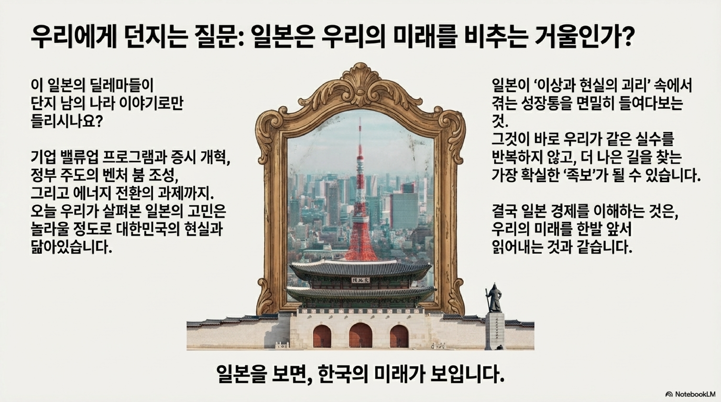 이 현상들은 겉보기엔 모두 다른 이야기 같지만, 공통적으로 한 가지를 보여줍니다. 바로 일본 경제가 '과거의 성공 방정식'과 '미래의 불확실성' 사이에서 겪고 있는 거대한 성장통이라는 점입니다. 과연 일본은 이 성장통을 딛고 새로운 도약의 발판을 마련할 수 있을까요? 계속해서 지켜보겠습니다.
