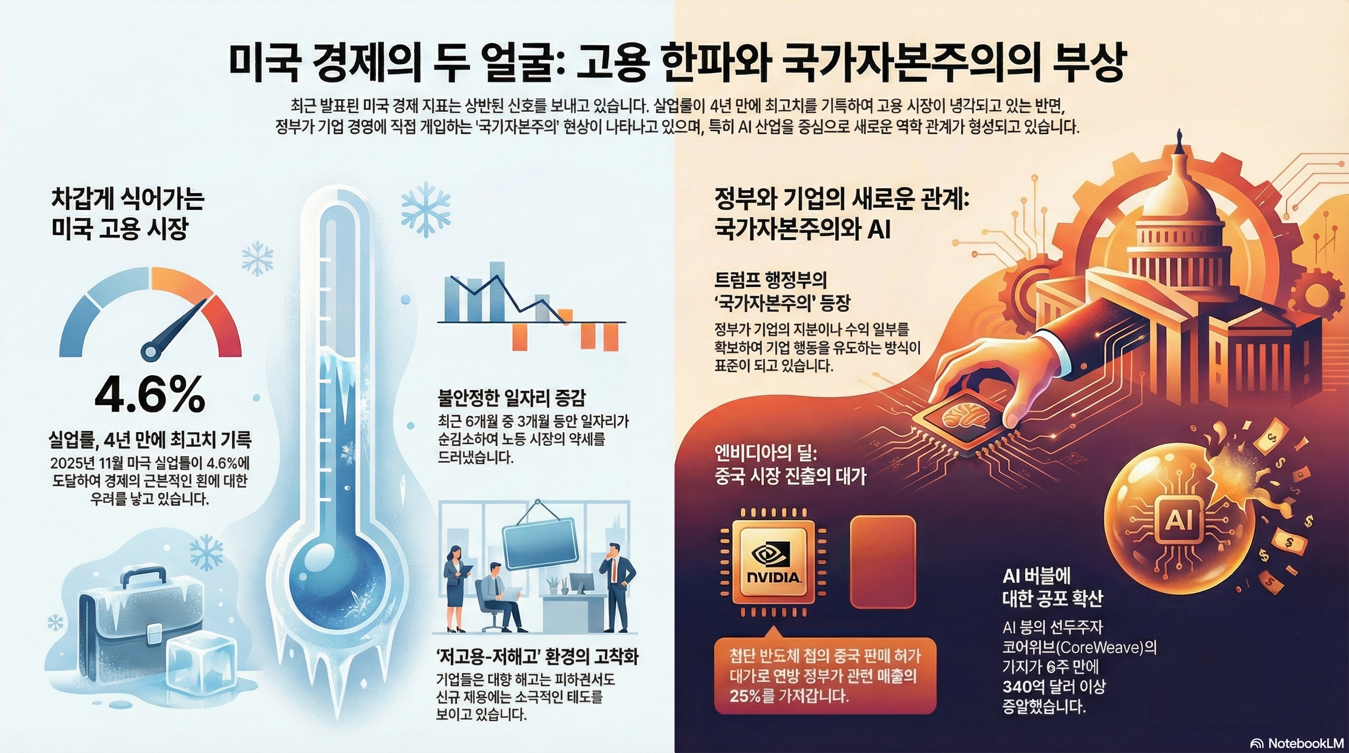 두 번째 이야기입니다. 현 트럼프 행정부 들어서 미국 정부와 기업의 관계가 아주 드라마틱하게 변하고 있습니다. 이건 단순히 세금 깎아주고 규제 풀어주는 차원이 아닙니다. 정부가 아예 시장에 적극적으로 개입하는 '국가 자본주의'라는 새로운 현상이 나타나고 있는데요. 이게 앞으로 세계 경제의 판을 뒤흔들 수 있기 때문에 우리가 반드시 이해하고 넘어가야 합니다.