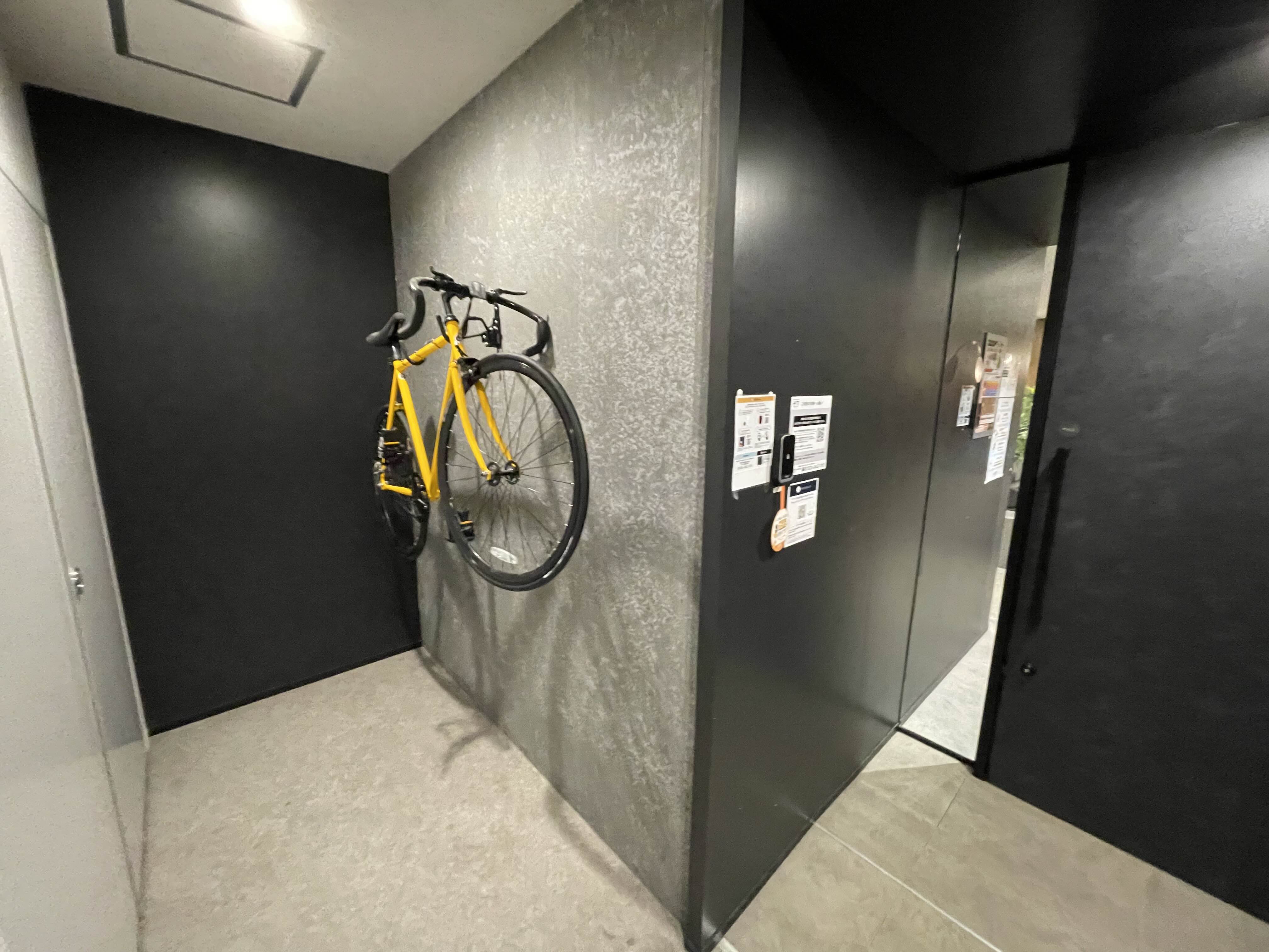 자전거도 걸려있고 스케이트보드도 있고..