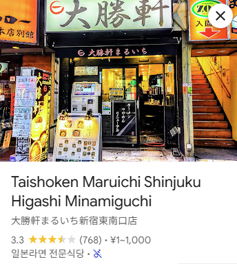 Taishoken Maruichi Shinjuku Higashi Minamiguchi · 3 Chome-34-3 Shinjuku, Shinjuku City, Tokyo 160-0022 일본