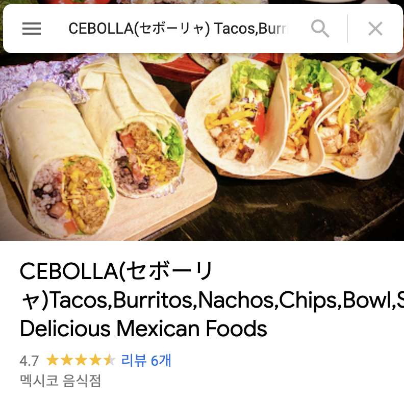 쿠라마에에서 타코를 먹고 싶어서 구글에서 검색
