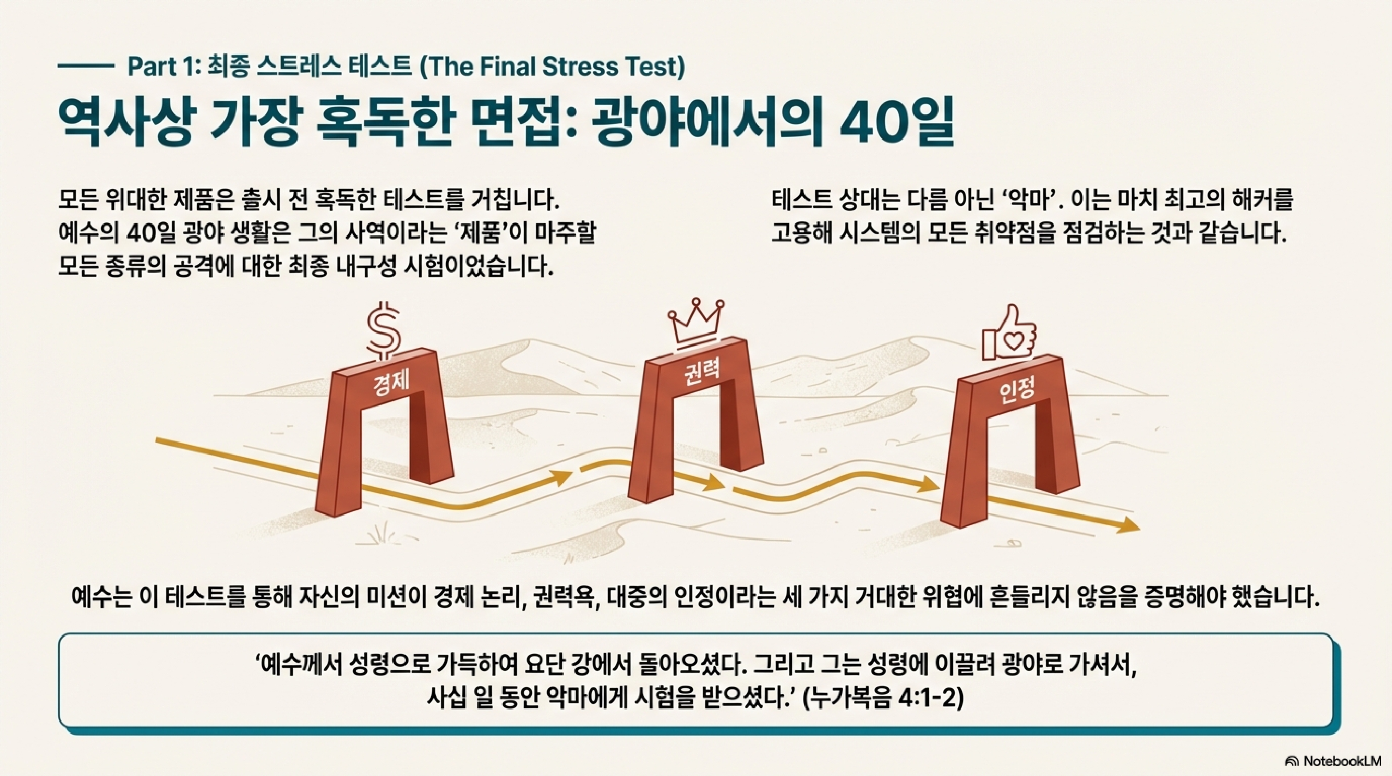 세션 1: 메시아의 인턴십: 광야에서 벌어진 40일간의 압박 면접 (4:1-13)