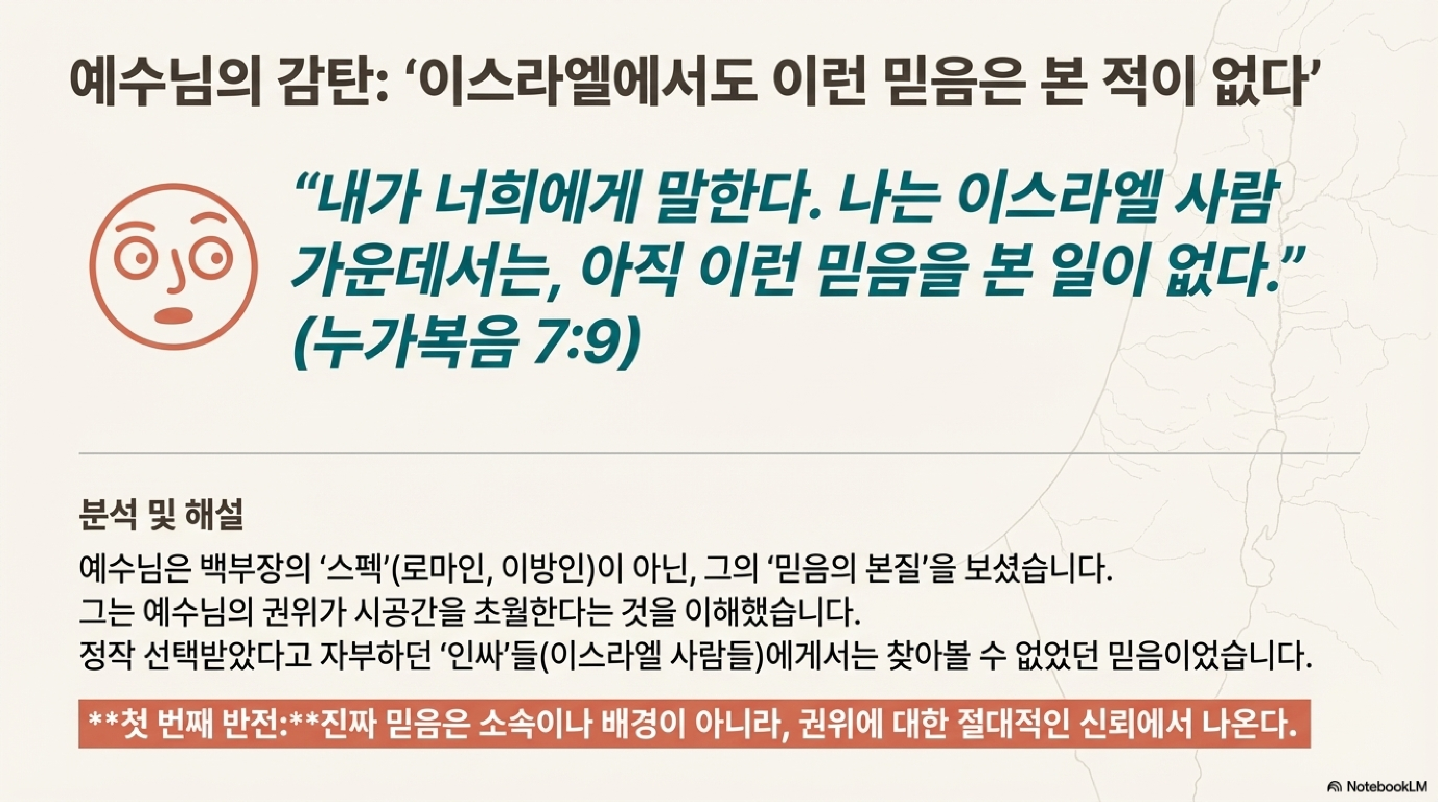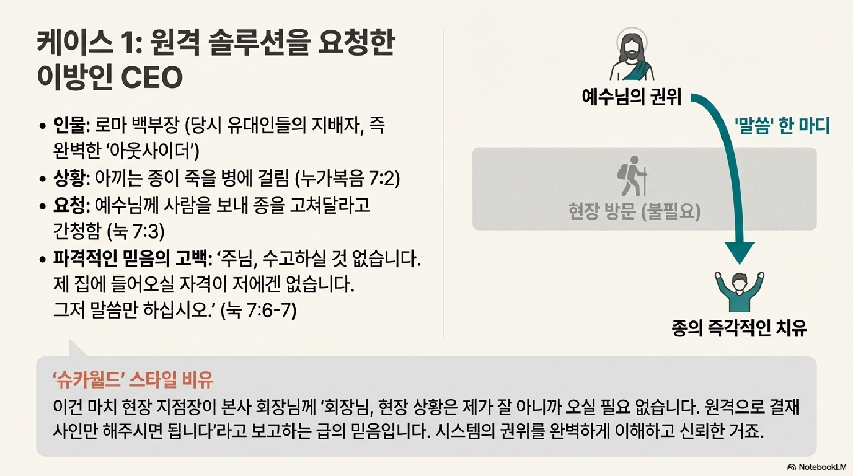 2.0 첫 번째 에피소드: 로마 백부장의 '넘사벽' 믿음 (눅 7:1-10)
