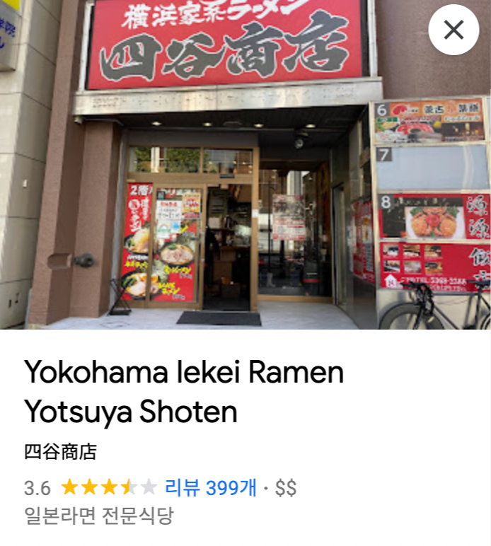 요츠야역에서 바라보면 대로변에 있는 큰 라멘집 료마 용마 그냥 그 가게가 주는 압도적인 포스에 호기심이 자극되어 가보고 싶었다. 구글평점 3.9 낫배드 横浜らーめん 龍馬 · 1 Chome-4 Yotsuya, Shi