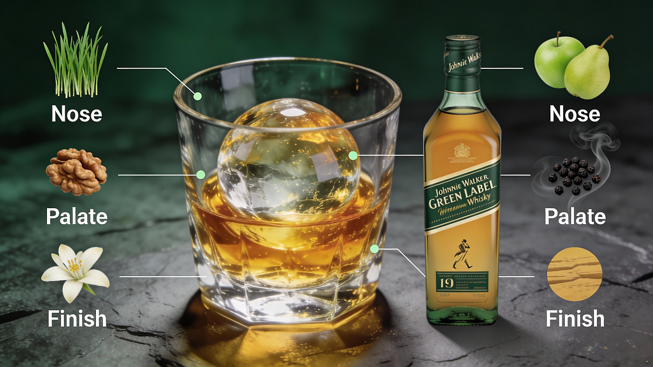 - vs 조니워커 블루: 블루라벨이 비단결 같은 목 넘김(Smoothness)에 집중했다면, 그린라벨은 '몰트의 개성'에 집중했습니다. 가성비와 퍼포먼스 면에서는 애호가들 사이에서 블루라벨 못지않은 평을 듣기도 합니다.