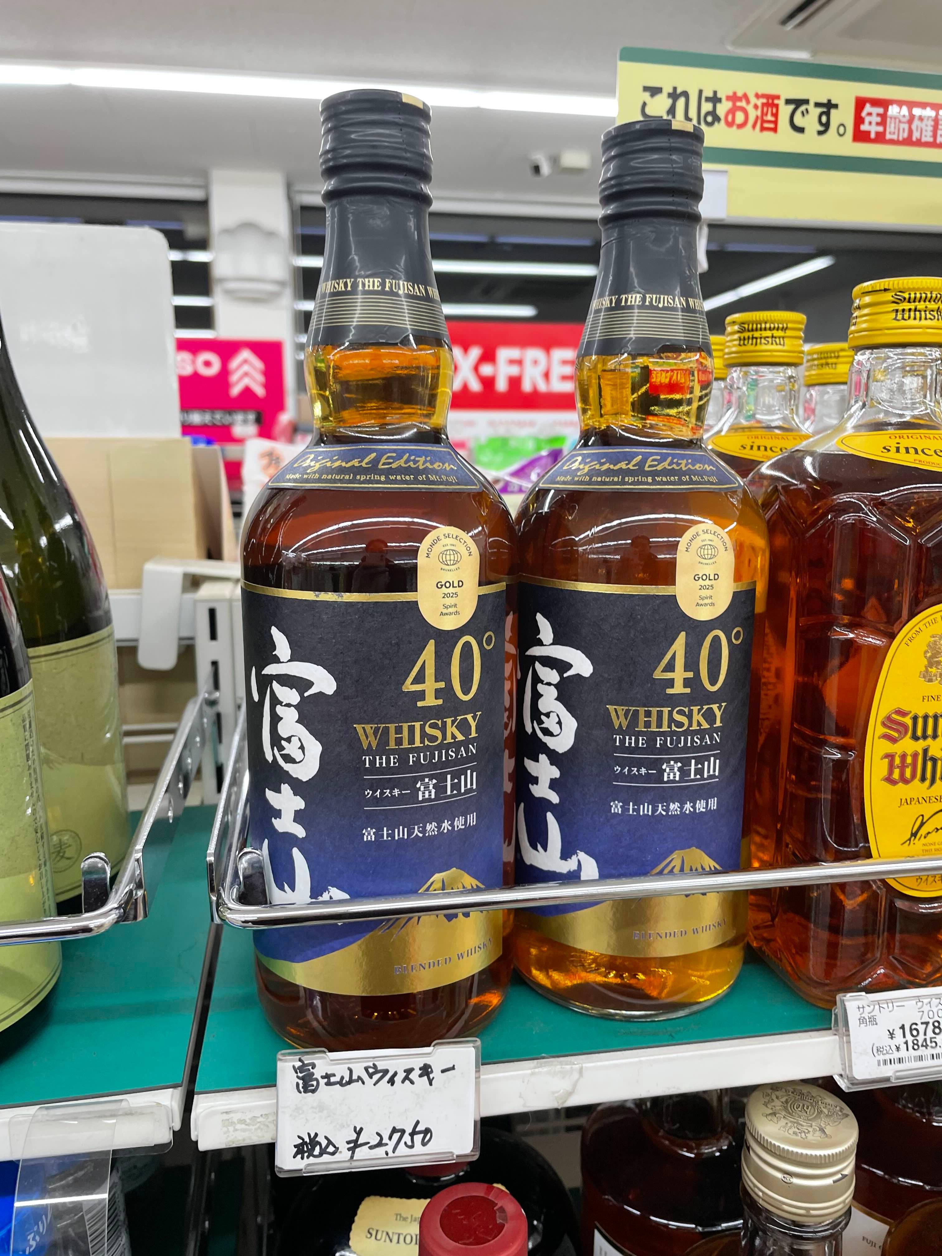 사진 속 위스키는 후지산 위스키(富士山ウイスキー) 40도로, 일본 야마나시현에서 제조되는 국산 블렌디드 위스키입니다. 제조사는 마키노 슈조(Makino Shuzo)이며, 미레x스재팬(Mirex Japan)이 판매하고 있습니다.