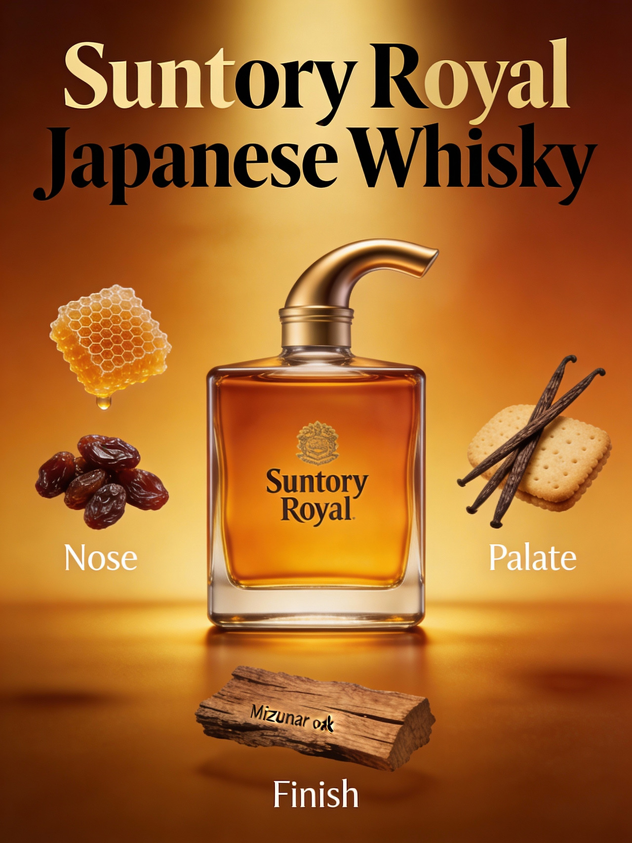 제공해주신 배경지식 파일에서 일본 위스키는 최근 세계적으로 품귀 현상을 빚으며 프리미엄 카테고리로 분류되고 있습니다 . 산토리 로얄은 그중에서도 '고급 블렌디드'의 입문 격에 위치합니다.