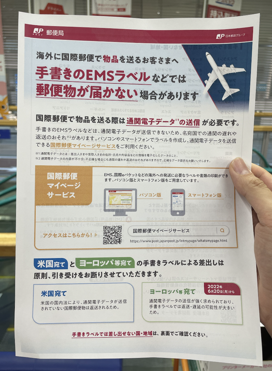해외에 국제우편을 보내기 위해서는 손으로 적는 EMS라벨은 우편물이 도착하지 않는 경우가 있다고 한다.
