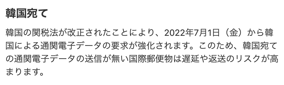 이 때문에 한국에 전자데이터 송신이 없는 국제 우편물은 지연 및 반송의 리스크가 커짐...이라고 적혀있는듯..
