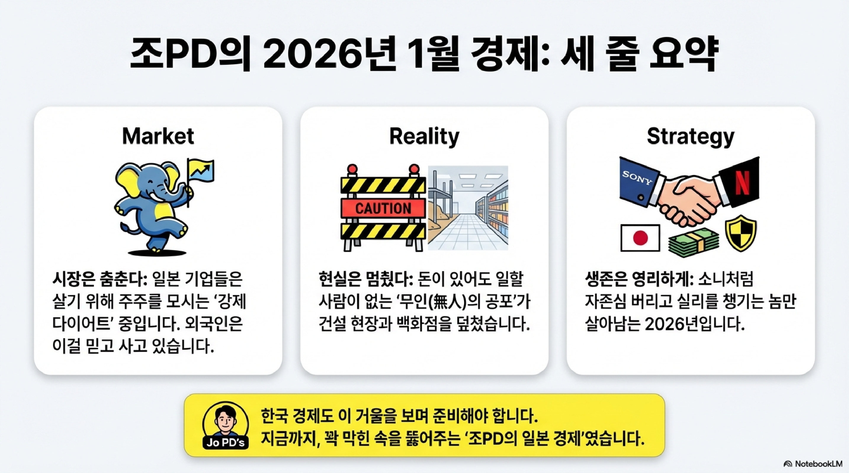 결국 오늘 이야기는 모두 '사람'과 '돈'의 흐름이 바뀌고 있다는 신호입니다. 사람이 없어서 못 짓고, 표를 얻으려고 돈을 풀겠다 하고, 사람들이 안 와서 문을 닫고 있죠. 이 거대한 변화의 끝에서 일본은 과연 어떤 모습을 하고 있을까요?