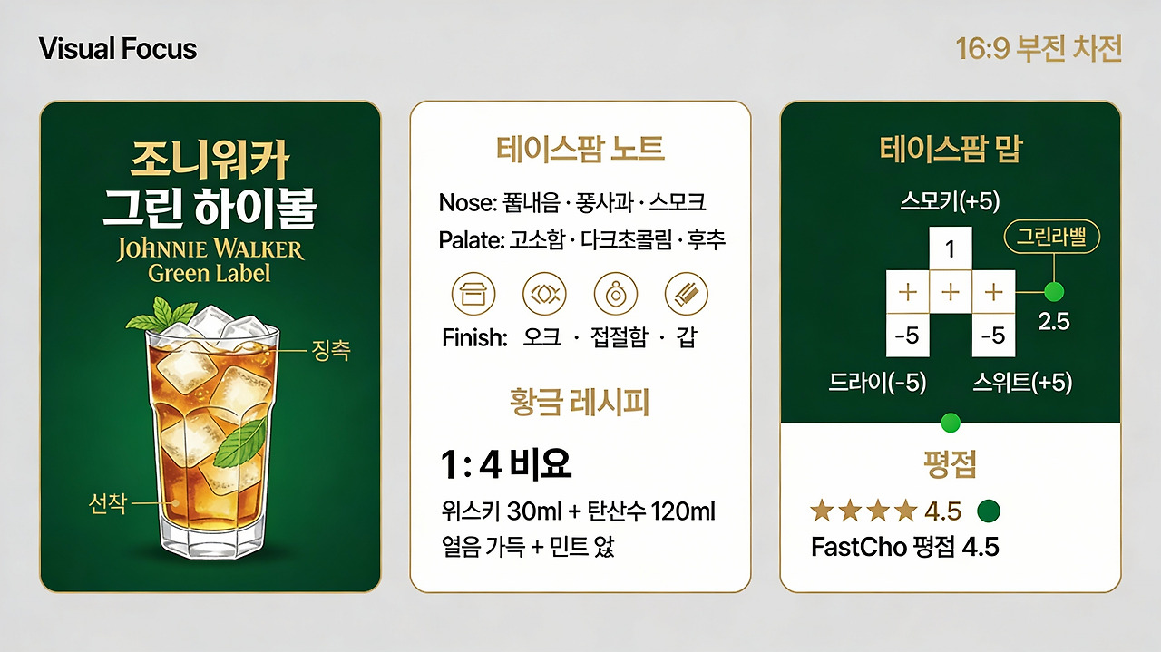 조니워커 그린라벨 15년 하이볼: 블렌디드 몰트의 정석 (feat. 탈리스커 & 조니워커 블랙 비교)