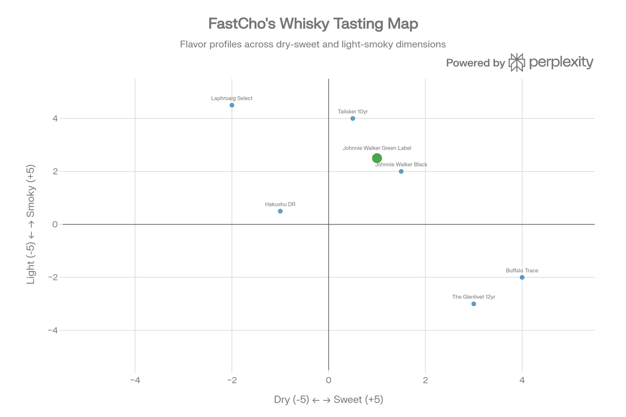 보유하신 위스키들과 비교하여 그린라벨의 위치를 시각화했습니다.