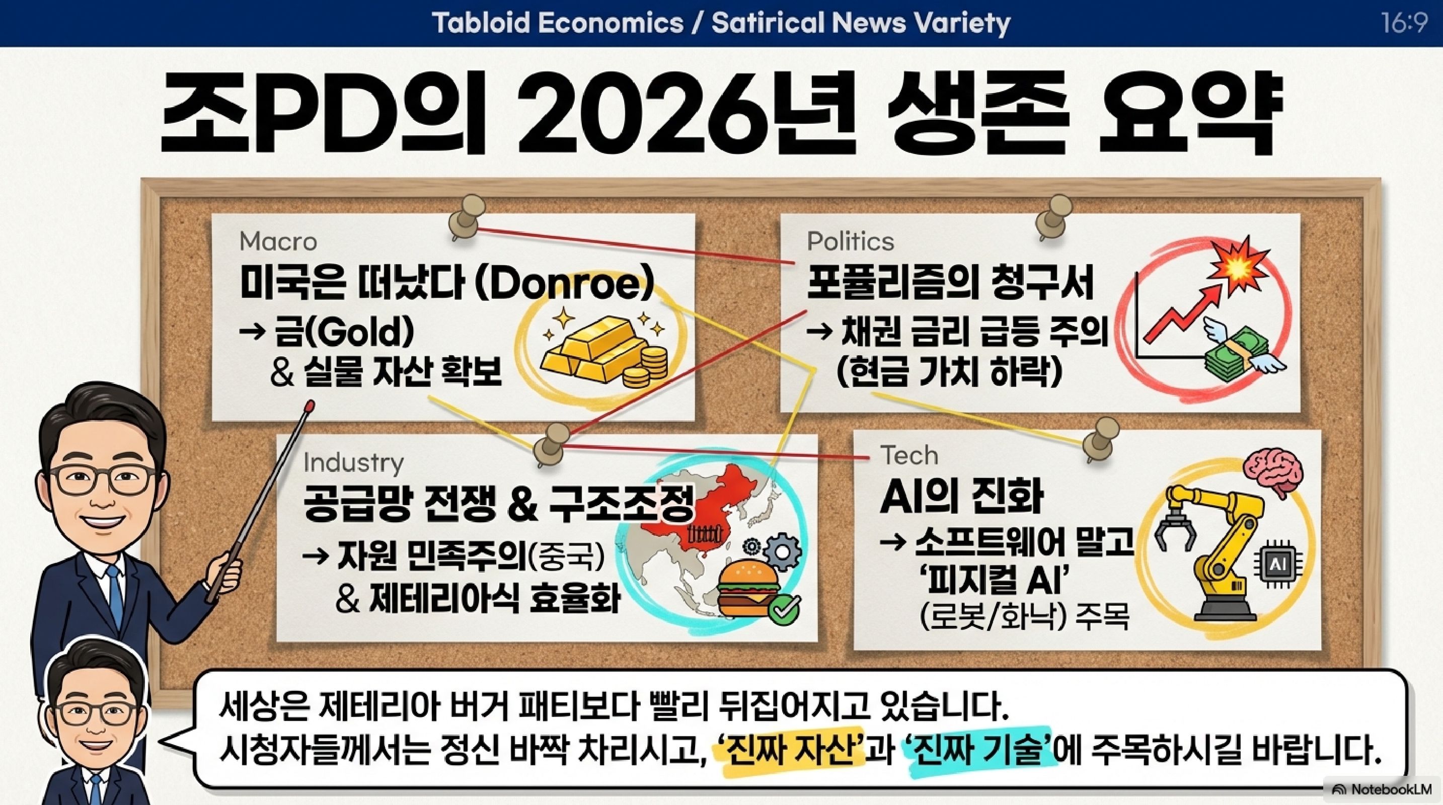 이 이야기는 비단 일본만의 것이 아닙니다. 지정학적 위치, 산업 구조, 정치적 상황까지 많은 것을 공유하는 우리 한국에게도 "당신들은 이 혼돈 속에서 어떤 길을 찾을 것인가?"라는 무거운 질문을 던지고 있습니다. 결국 일본이나 우리나, 이 혼돈의 시대에 고통이 따르는 선택지를 외면하고 달콤한 말만 들으려 한다면, 국가의 항로를 통째로 잘못 들게 될지도 모릅니다. '그래서, 당신은 어떤 청구서를 감당할 것인가?' 이 질문을 피할 수 없는 시간입니다. '조PD의 일본 경제'였습니다.