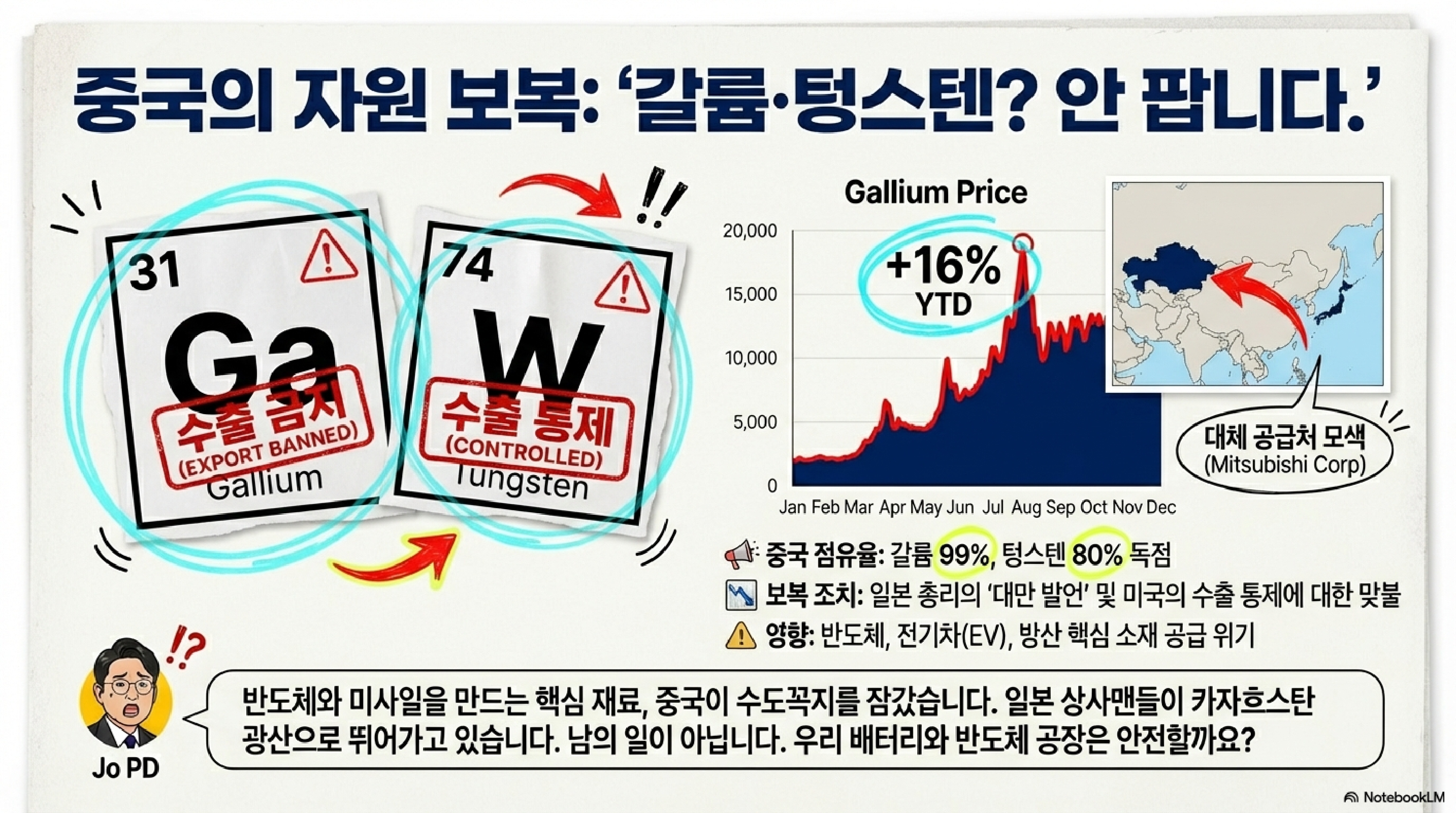 여기에 더해 중국은 지금 한 손에는 헐값의 물량 폭탄을, 다른 한 손에는 첨단소재의 수도꼭지를 쥐고 일본 산업의 숨통을 조이고 있는 겁니다. 에틸렌 같은 범용 제품은 '공급 과잉'으로 시장을 죽이는 한편, 반도체나 전기차에 쓰이는 희소금속(레어메탈) 같은 첨단 소재는 '수출 통제'를 무기 삼아 가격을 최고치로 끌어올리고 있습니다. 이 전방위적인 압박에 과연 어떻게 대응해야 할까요?