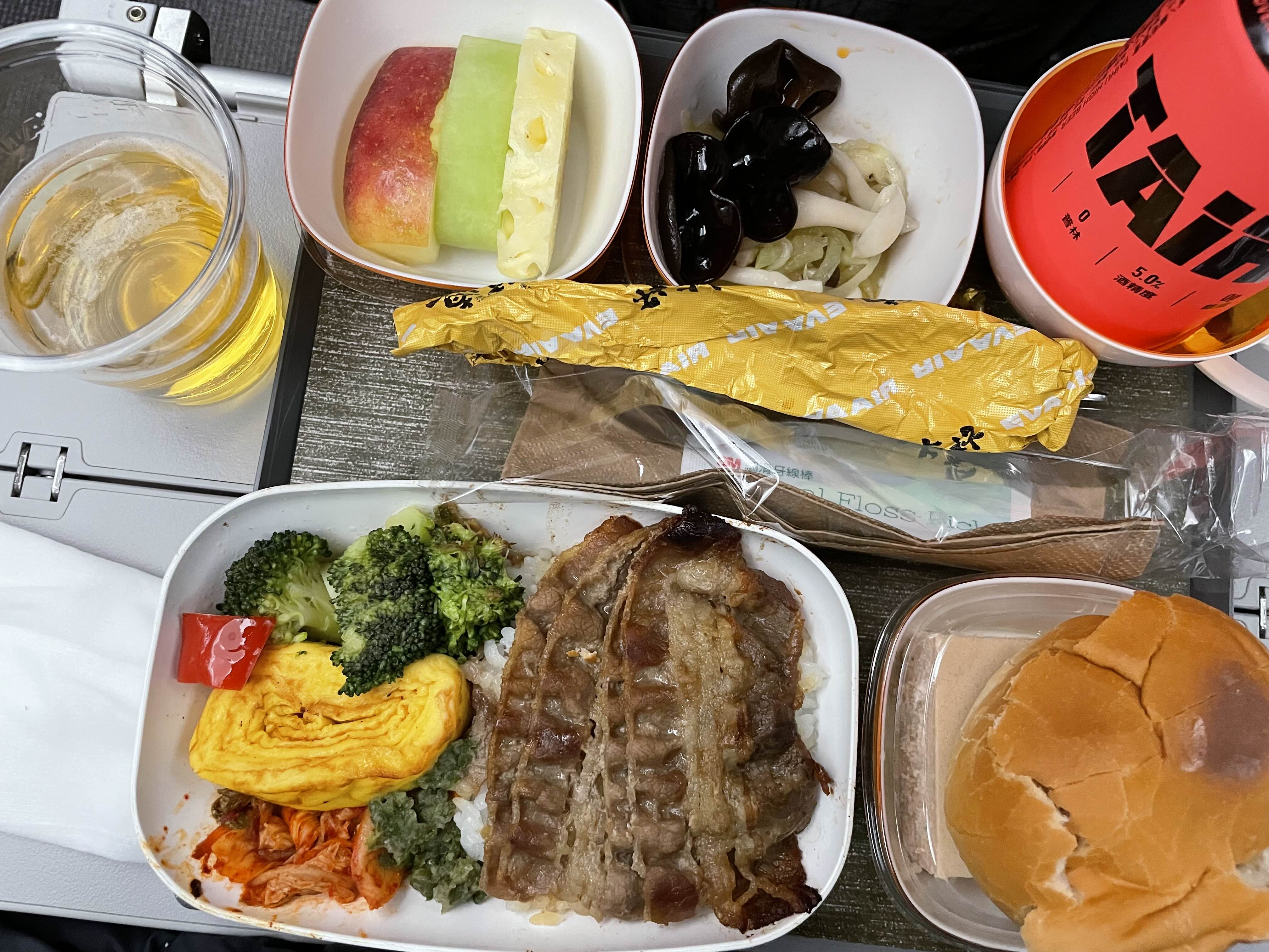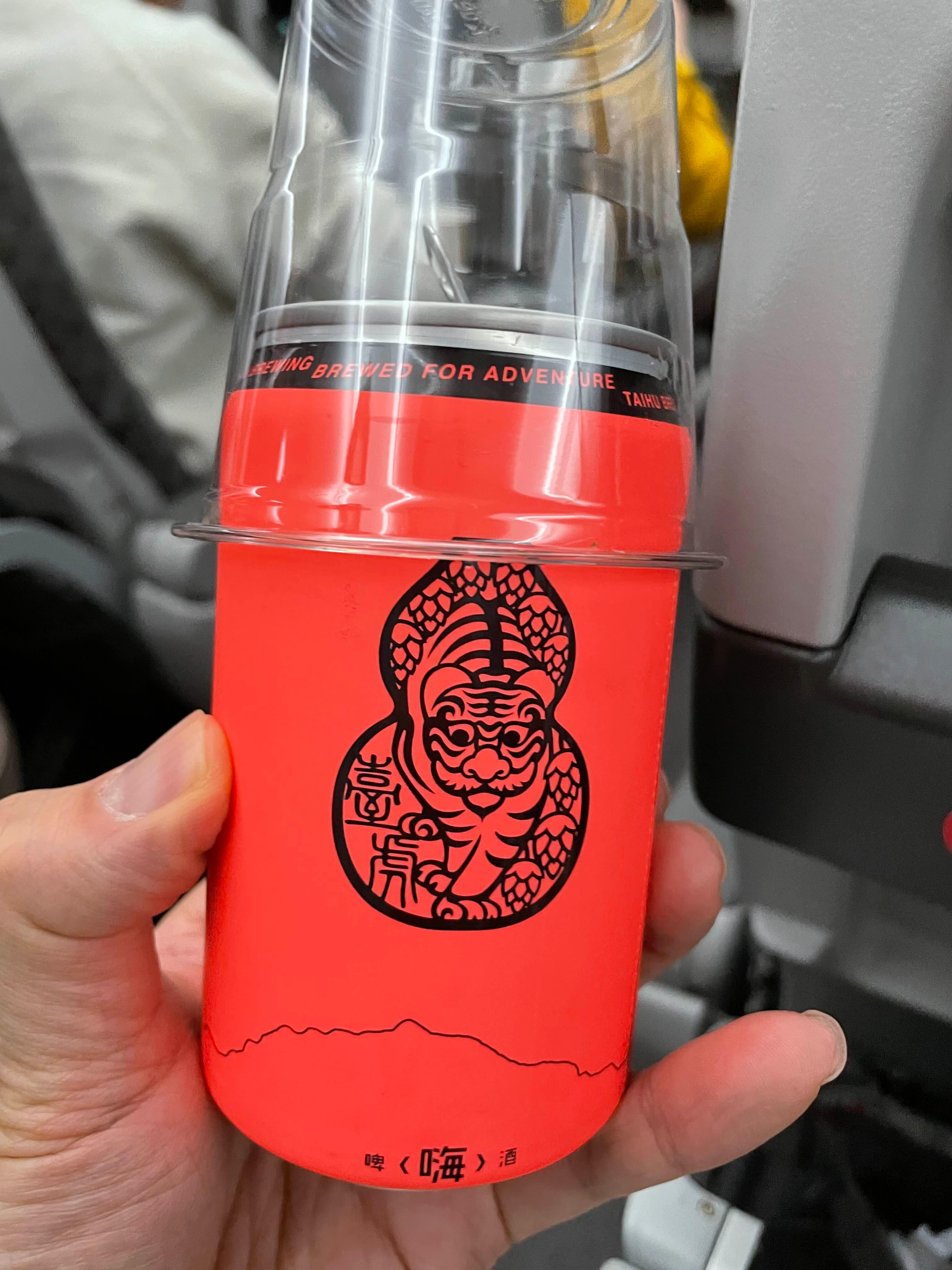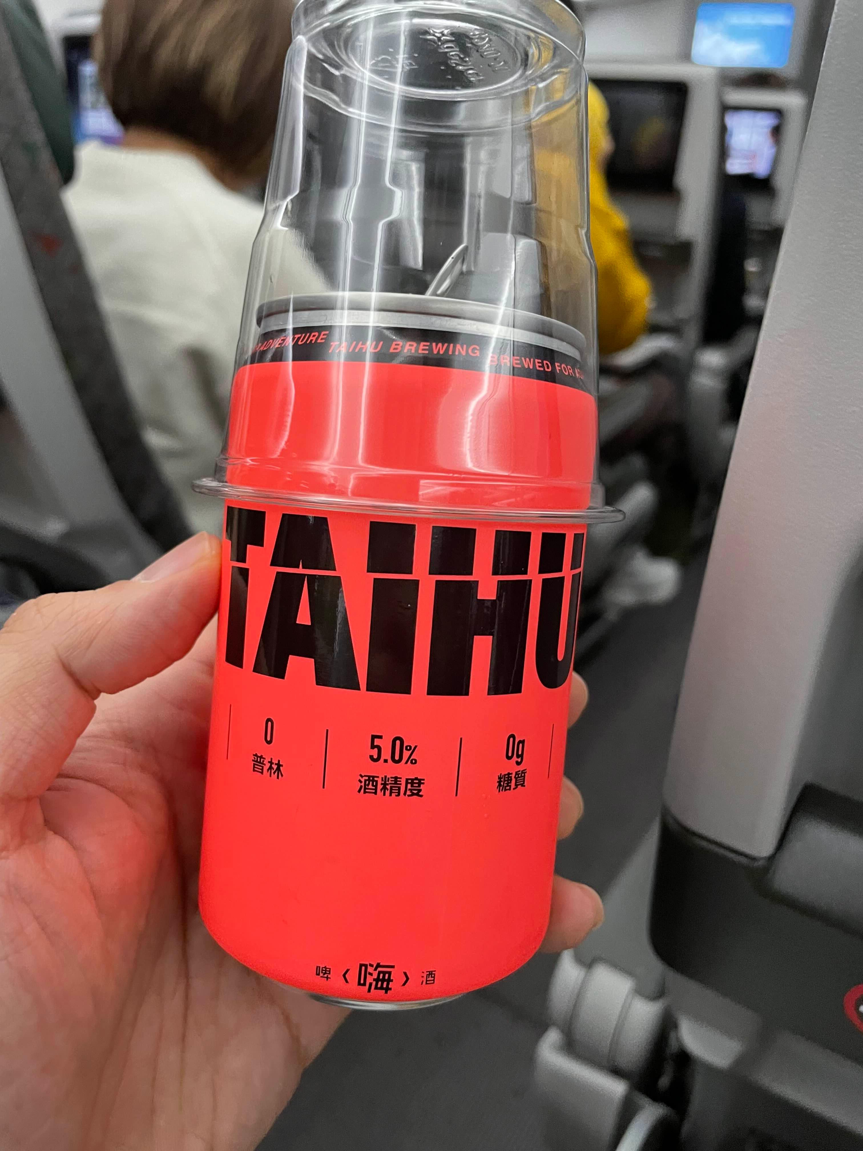 - 에버항공 BR190편 기내에서 제공되는 '타이후후' 맥주는 5% 도수의 상큼한 대만 전통맛으로, 빨간 용 디자인 용기가 인상적이다.
