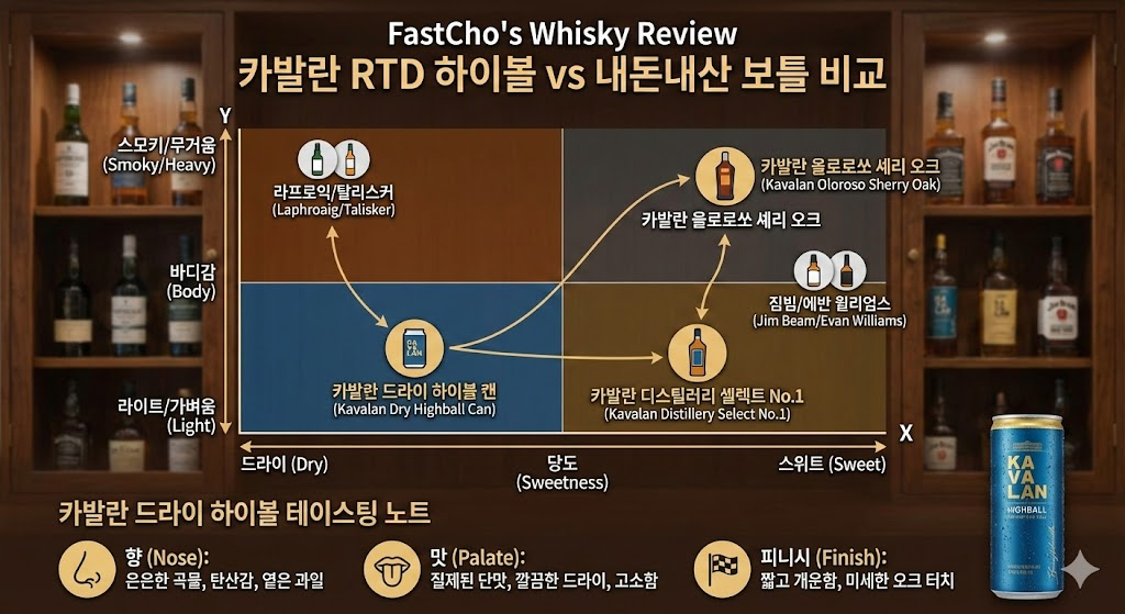 - 한줄평: "카발란의 DNA는 느껴지지만, 역시 형만 한 아우 없다. 시원한 맥주 대신 깔끔한 한 잔이 필요할 때 추천."