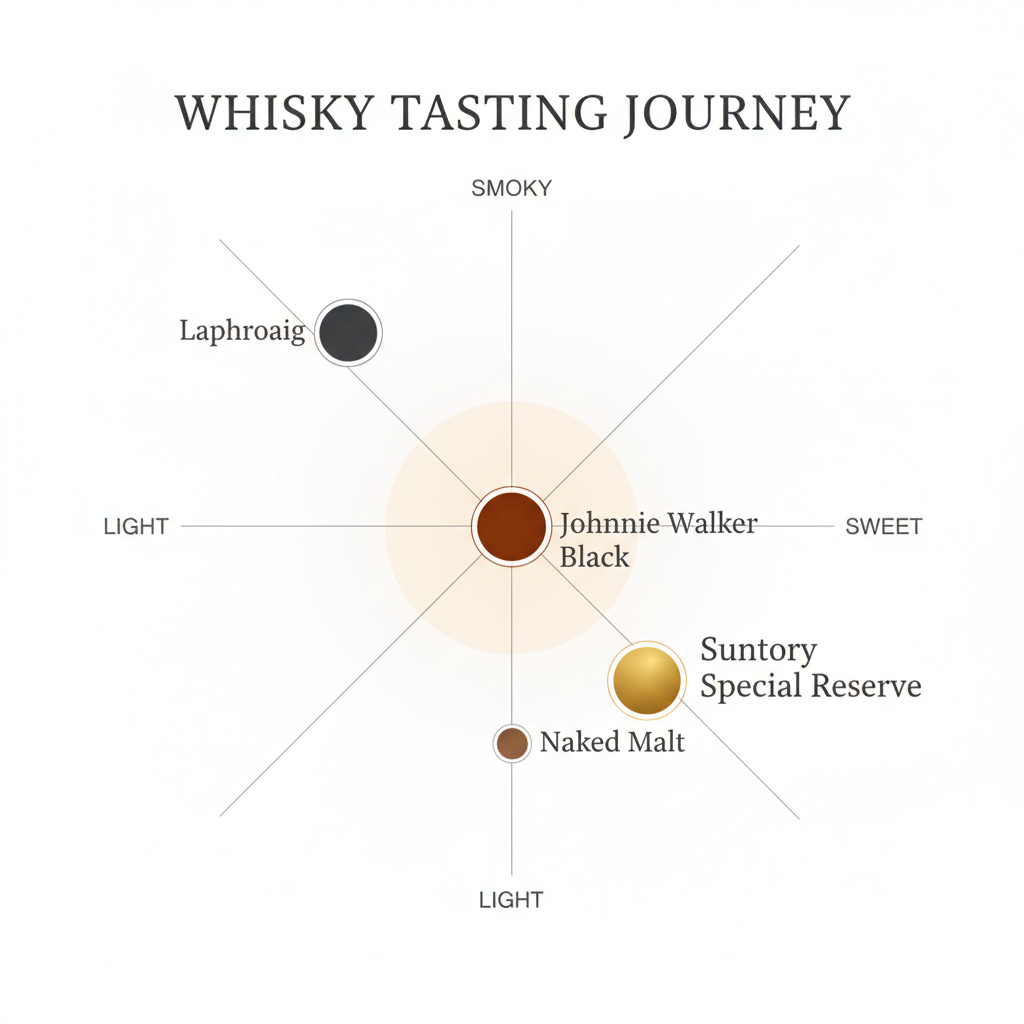 - 참고: 리스트에 있는 '탈리스커 10'은 스모키/피트 쪽 , '메이커스 마크'는 버번 특유의 단맛으로 스위트 쪽에 위치합니다. 스페셜 리저브는 그 사이에서 균형을 잡고 있습니다.