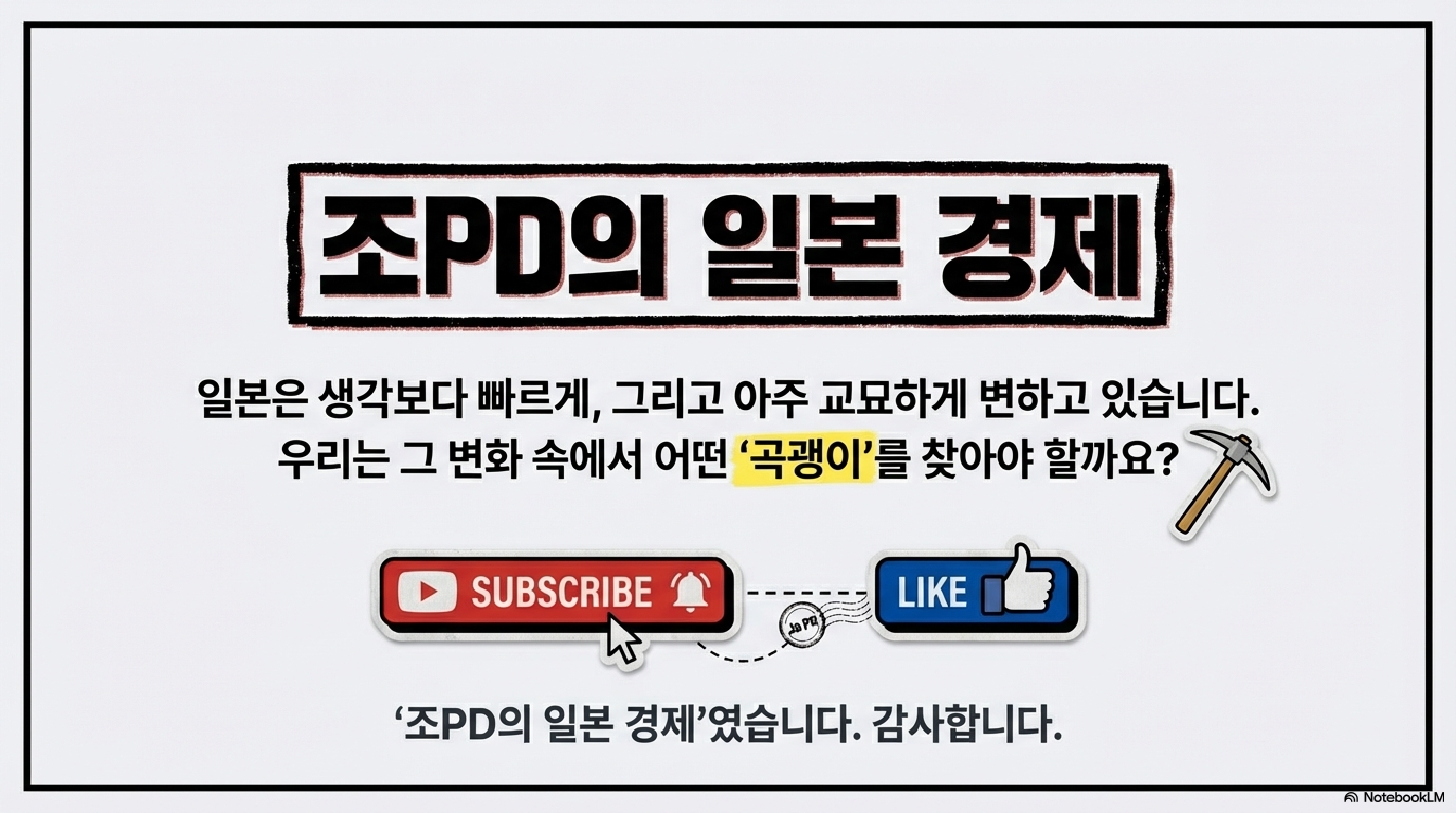 오늘의 이야기가 시청자 여러분의 지적 호기심을 채워드렸기를 바랍니다. 다음 시간에도 더 재밌고 깊이 있는 일본 경제 이야기로 돌아오겠습니다. 지금까지 '조PD의 일본 경제'였습니다. 감사합니다.