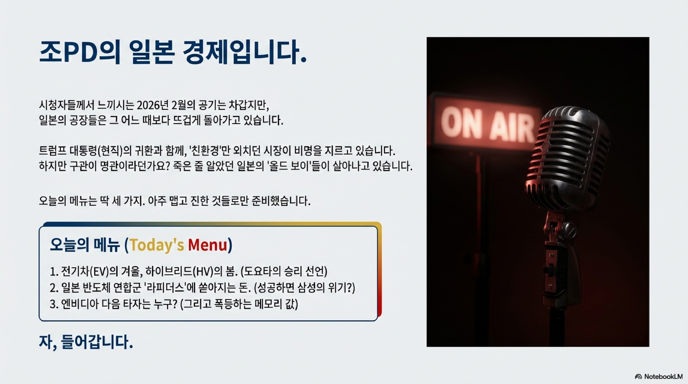 조PD의 일본 경제: 전기차의 배신과 반도체의 역습 (Daily 경제 리포트)