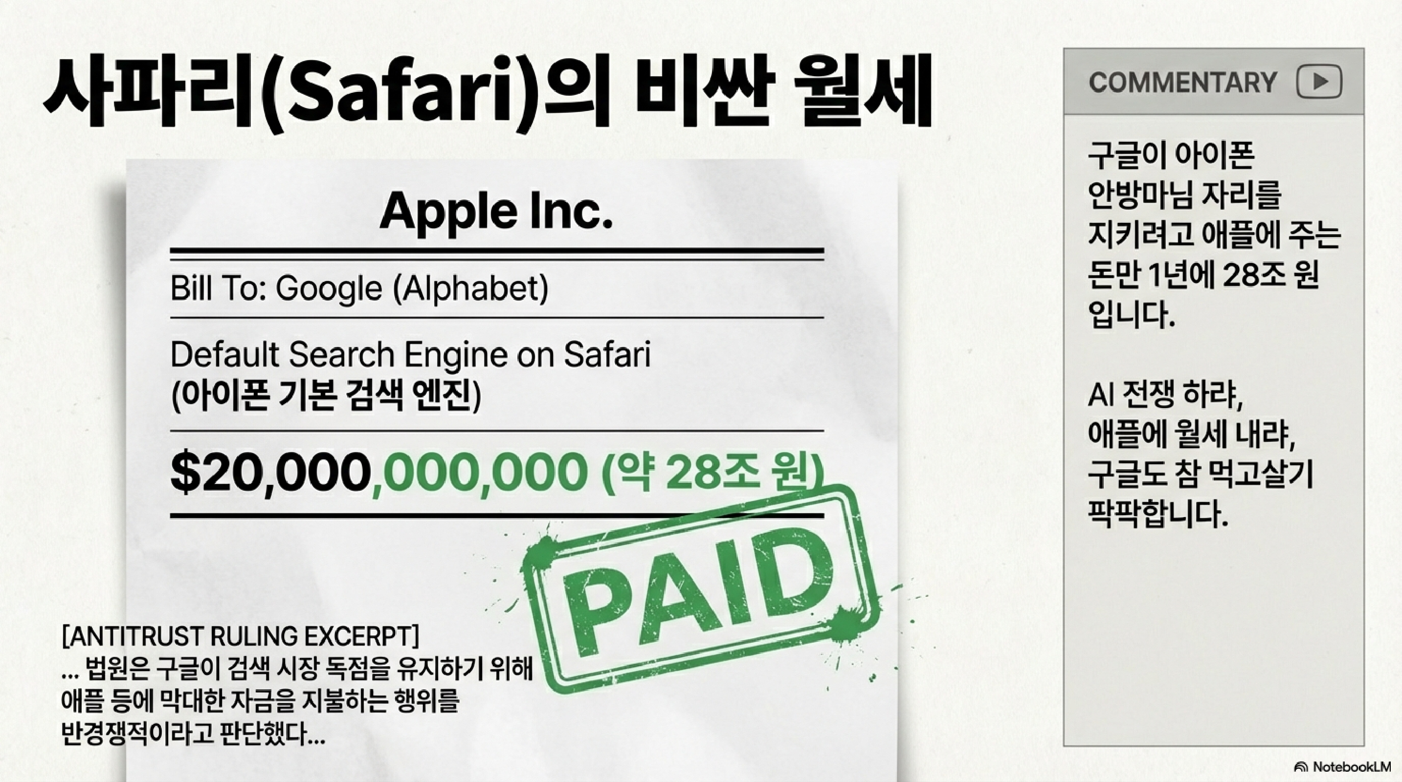 특히 최근 앤스로픽(Anthropic)이 법률 계약서 검토 같은 특정 업무를 자동화하는 도구를 내놓자 시장의 의구심은 확신으로 바뀌었습니다. 기존 소프트웨어 기업들이 AI에 먹힐 수 있다는 공포가 번진 거죠. 게다가 구글이 도입한 「AI 모드」 검색은 링크를 줄이고 챗봇 답변을 강조하는데, 이건 구글의 밥줄인 광고 모델을 스스로 갉아먹는 독이 될 수도 있습니다. 그래서 지금 AI 산업은 제이피모건의 분석처럼 「선고 후 재판」을 받는 꼴입니다. 실적이 좋아도 '거품'이라는 죄목으로 이미 유죄 선고를 내리고 재판을 시작했다는 거죠.