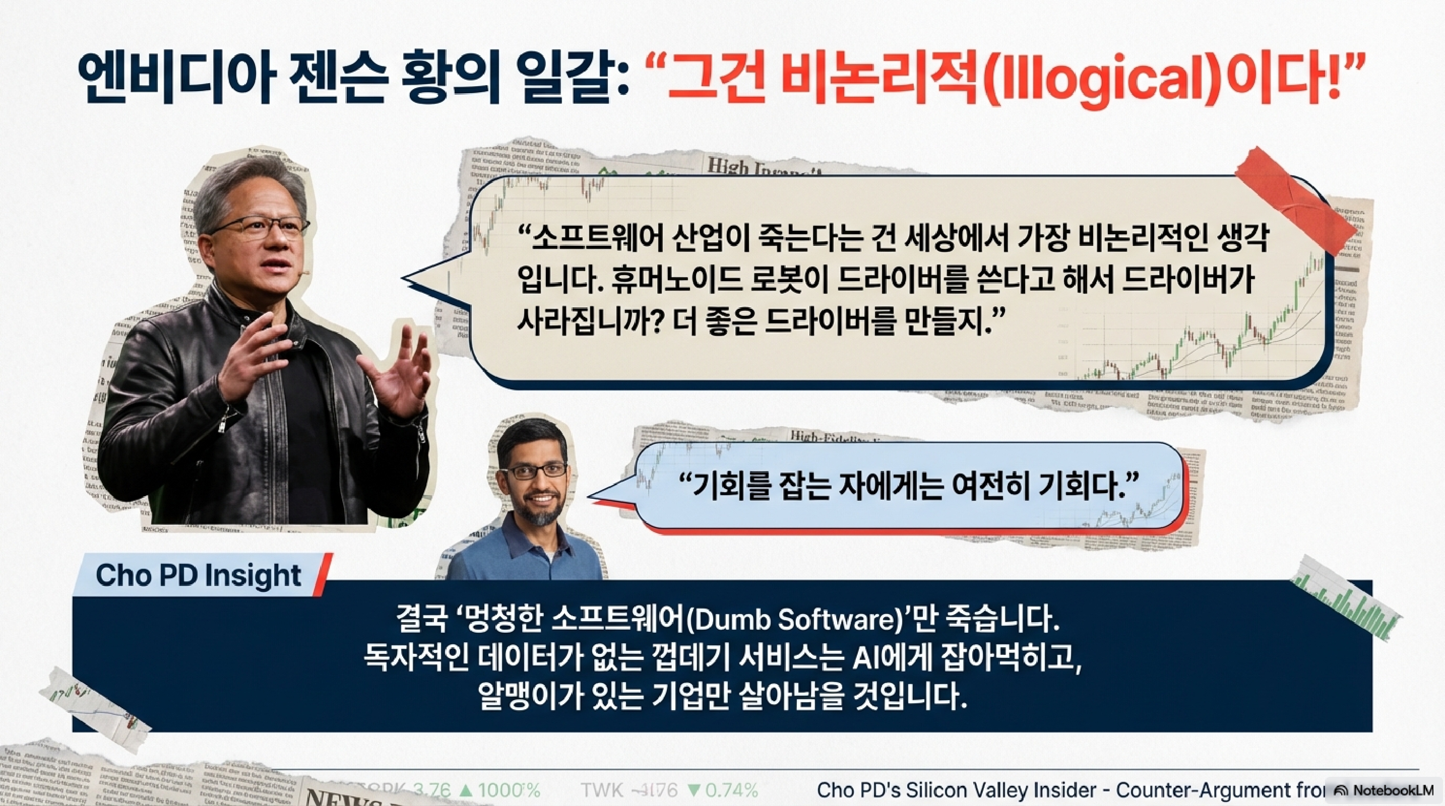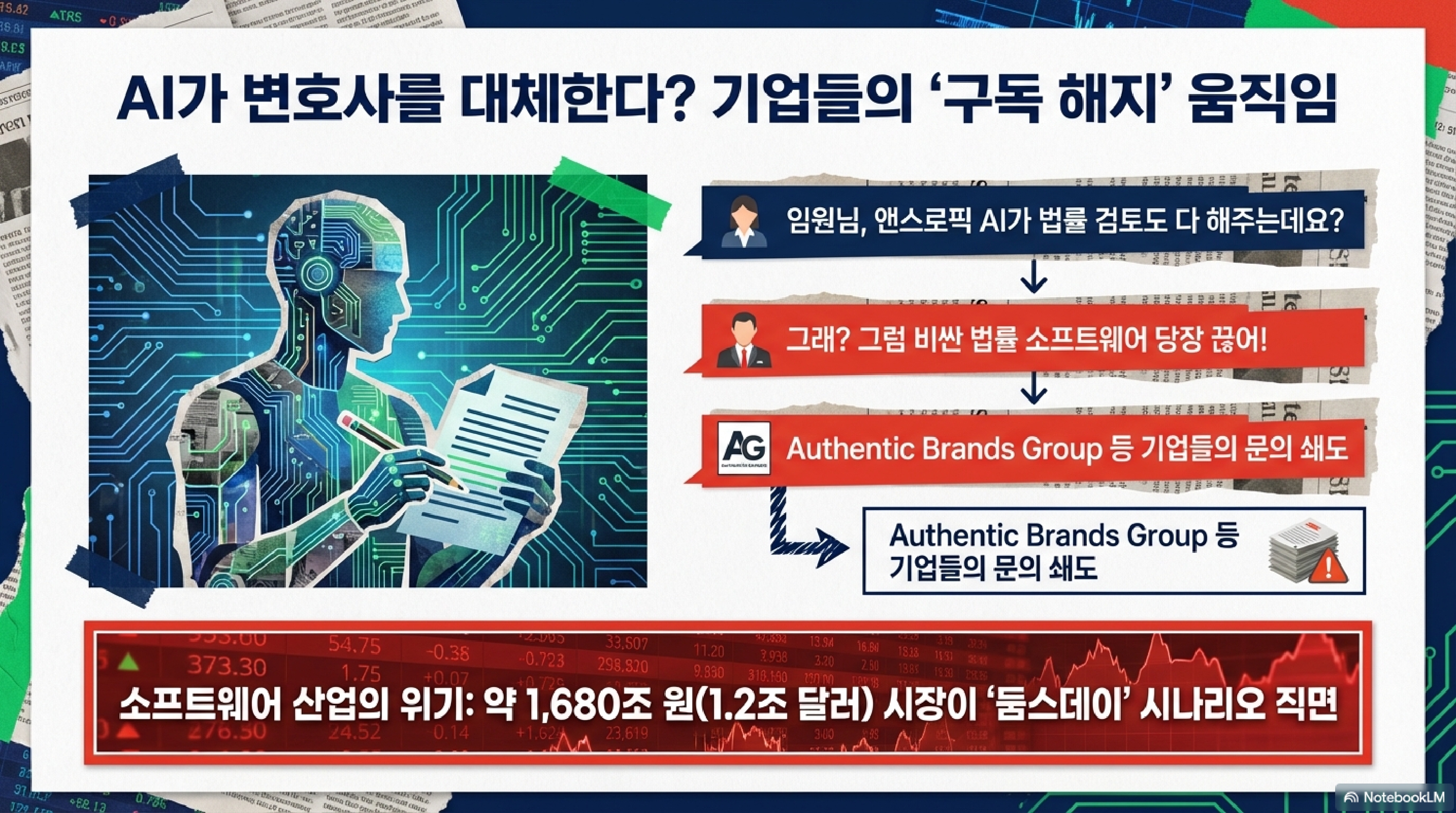 사실 작년 초 트럼프 현 대통령이 관세를 올릴 때만 해도 시장은 'Sell America'를 외치며 도망갔습니다. 지수가 고점 대비 열여섯 퍼센트나 빠지기도 했죠. 하지만 막상 뚜껑을 열어보니 예외 조항도 많고 무역 협정도 늘어나면서, 공포는 'Buy America'로 급반전했습니다. 마치 무서운 호랑이인 줄 알았는데 알고 보니 돈다발을 든 형님이었달까요? 다만 샴페인을 터뜨리기엔 이릅니다. 최근 앤스로픽(Anthropic)의 클로드(Claude) 제품에 추가된 '애드온(add-ons)' 기능이 오히려 공포를 자극하며 소프트웨어 섹터에 대규모 매도세를 불렀습니다. AI가 스스로를 갉아먹을 수 있다는 경고장이 날아든 셈입니다.