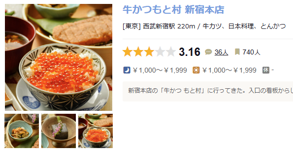링크해주신 '신주쿠 본점(新宿本店)' 페이지는 등록된 리뷰 수가 36개 정도로 매우 적습니다. 타베로그 알고리즘상 리뷰 데이터가 쌓이기 전까지는 기본 점수(3.0) 근처에 머무는 경향이 있어 실제 만족도보다 점수가 낮게 보일 수 있습니다.