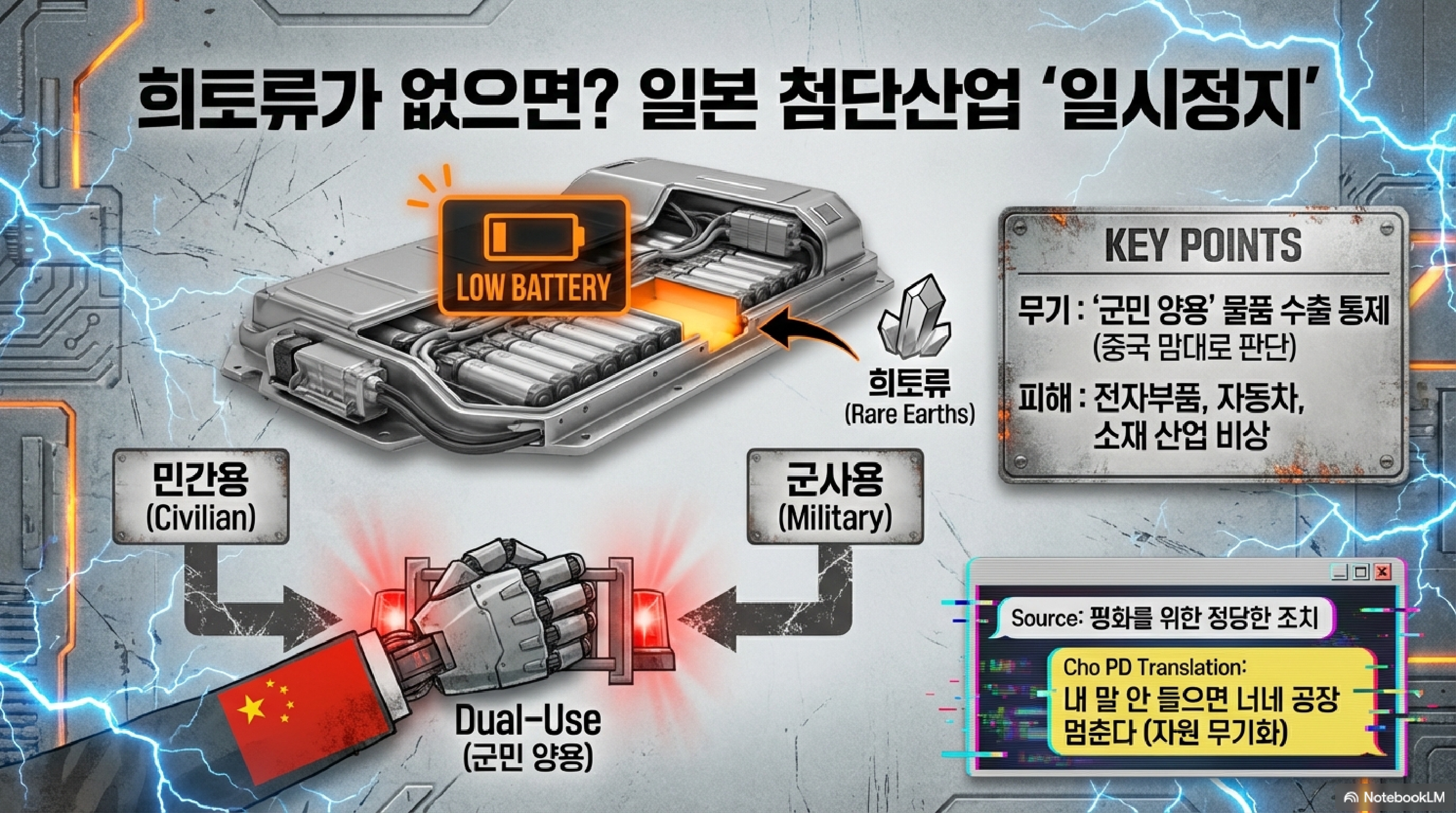 So What? 조PD의 통찰 들어갑니다. 한국의 반도체와 방산 기업 여러분, 이건 강 건너 불 구경이 아니라 우리 집 타는 냄새입니다. 중국이 말하는 군민양용(Dual-use)은 이제 하나의 거대한 감옥이 됐습니다. 우리가 만드는 그 어떤 제품도 중국의 심기를 건드리는 순간 군사용으로 둔갑해 규제 대상이 될 수 있다는 리스크, 이제는 피부로 느끼셔야 합니다.