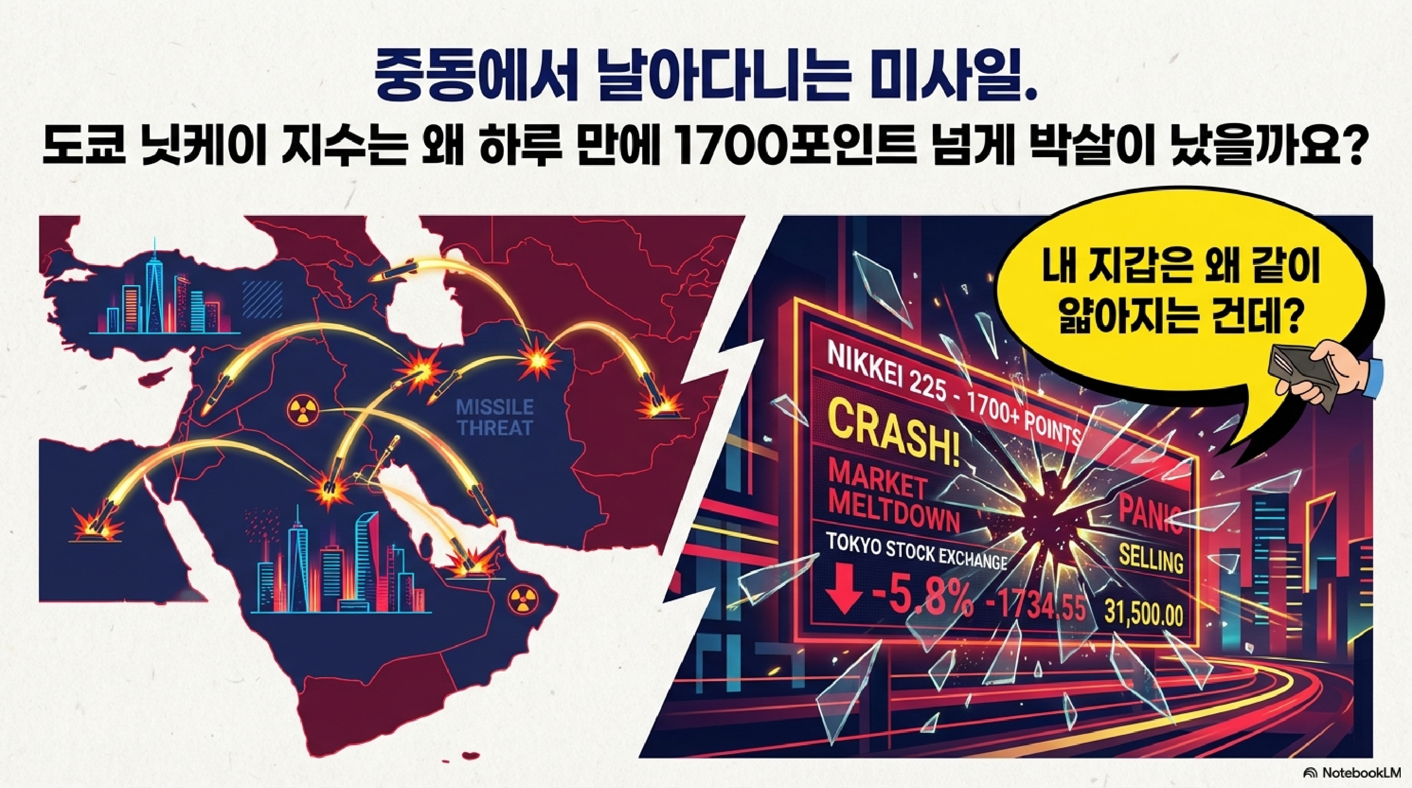 조PD의 일본 경제입니다. 시청자 여러분, 오늘 아침 뉴스 보셨습니까? 2026년 3월 4일, 오늘 일본 증시는 그야말로 참사라는 단어 말고는 설명이 안 됩니다. 뉴욕 증시가 1200달러나 미끄러지더니, 그 바통을 이어받은 닛케이 지수는 무려 1778엔이 폭락하며 장을 마쳤습니다. 이건 단순히 주가가 빠진 수준이 아니라, 누군가 일본 증시라는 잔칫상에 얼음물을 통째로 부어버린 꼴 아니겠습니까?