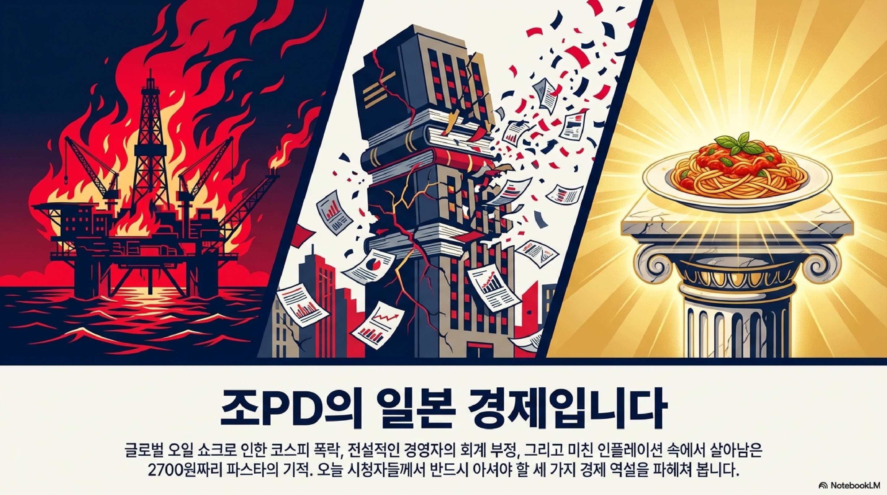오늘 가져온 소식들은 한마디로 '불지옥' 그 자체입니다. "이웃 나라 일본이 망하면 우리도 힘들지 않을까?" 같은 한가한 걱정은 접어두셔도 좋습니다. 지금 일본에서 터지고 있는 일들은 남의 집 불구경이 아니라, 우리 집 안방까지 열기가 들이닥치는 긴급 사태니까요. 기름값은 천정부지로 솟구치고, 믿었던 전설적인 기업은 장부를 조작하며, 거대 종교 제국은 공중분해 직전입니다. 자, 복잡한 경제 뉴스를 걷어내고 돈의 흐름만 날카롭게 해부해 드리겠습니다.
