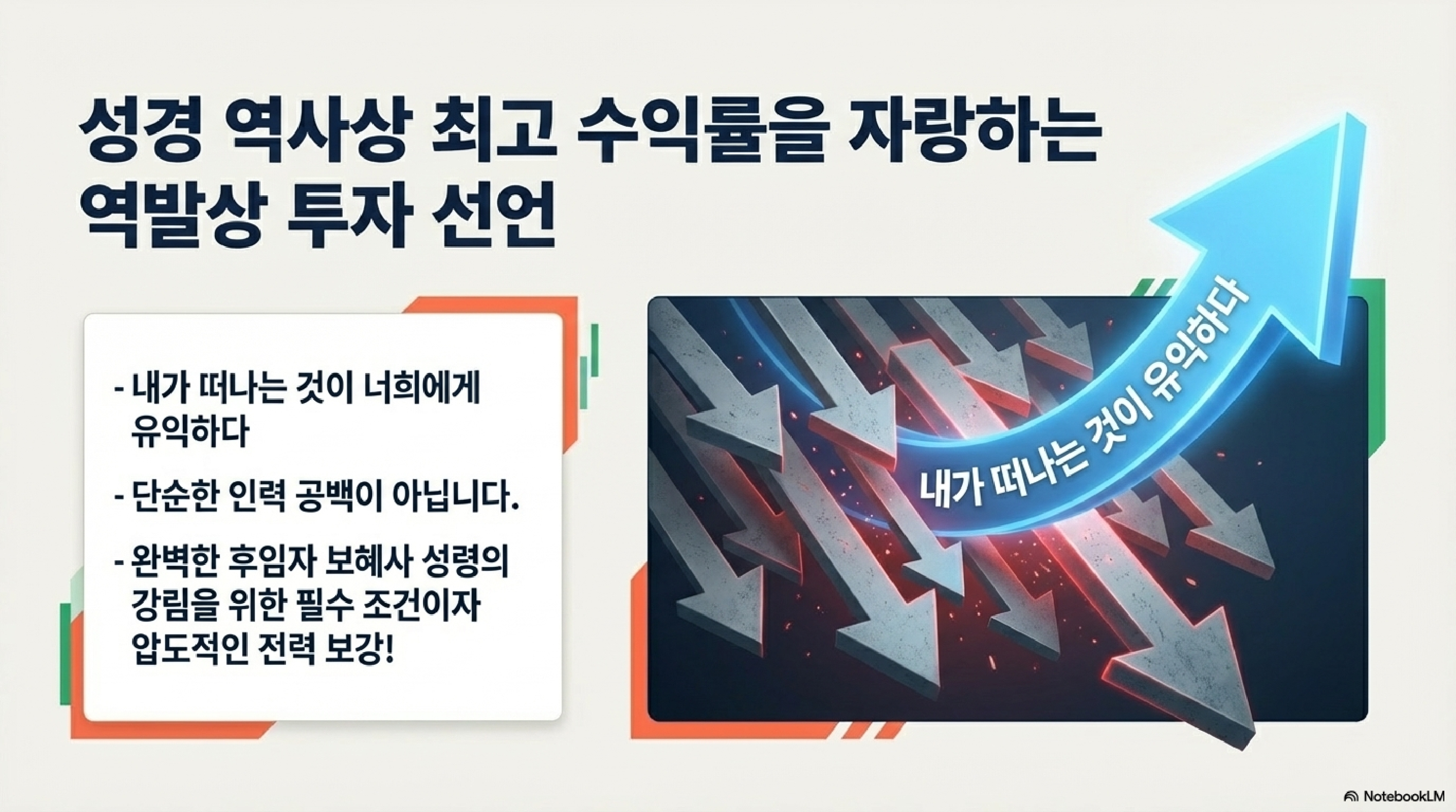 예수님이 아주 단호하게 말씀하십니다. "내가 떠나가는 것이 너희에게 유익하다(v.7)." 아니, 대장주가 빠지는데 뭐가 유익이냐고 제자들이 속으로 난리가 났겠죠. 하지만 이건 단순한 대타 투입이 아니라, 영적 생태계의 대대적인 _시스템 업그레이드_입니다.