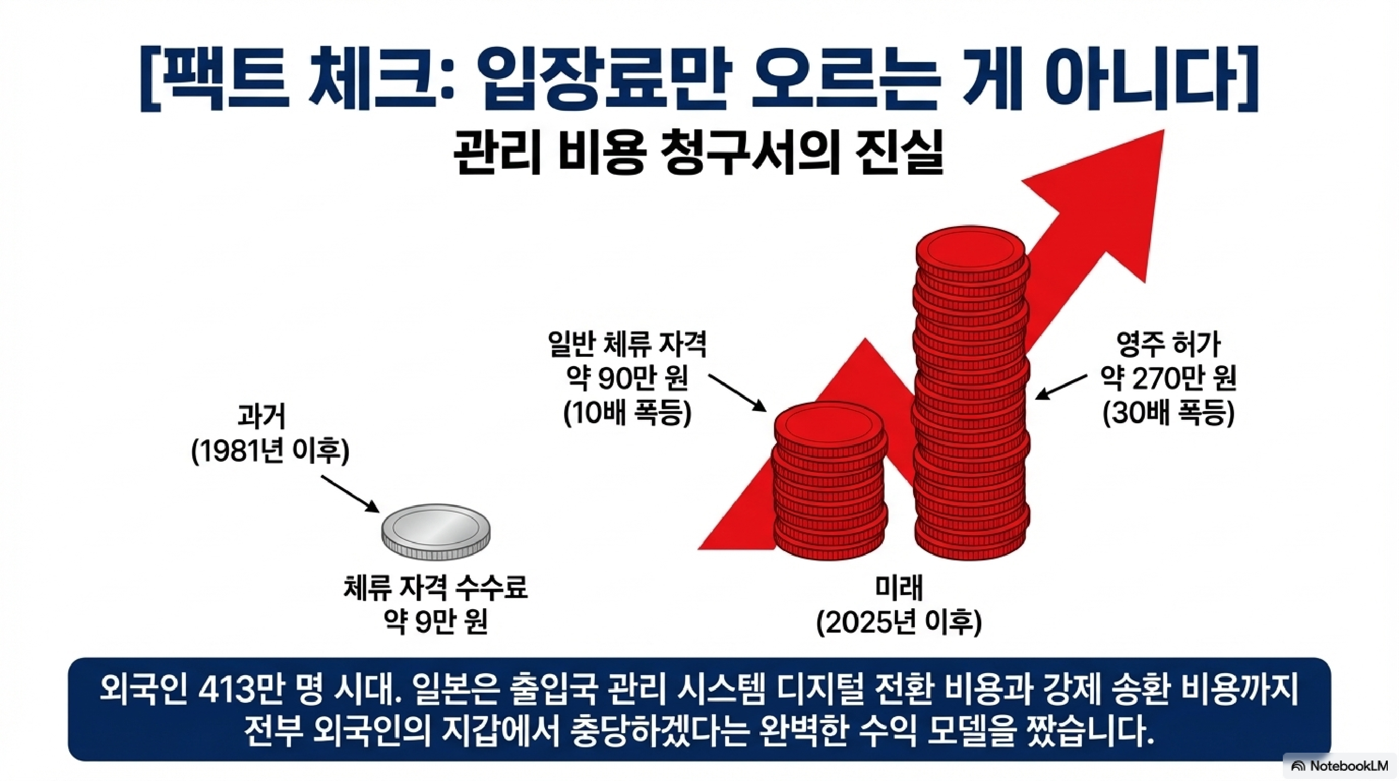 뿐만 아닙니다. 비자 수수료 상한선은 10만 엔, 영구 거주 수수료는 30만 엔(약 270만 원)으로 올리겠다고 합니다. 일본 정부의 배짱이 대단하죠? 엔저로 관광객이 넘쳐나니 이제는 대놓고 국익을 챙기겠다는 겁니다. 이렇게 걷어 들일 추가 재원만 연간 400억 엔(약 3,600억 원) 규모입니다.