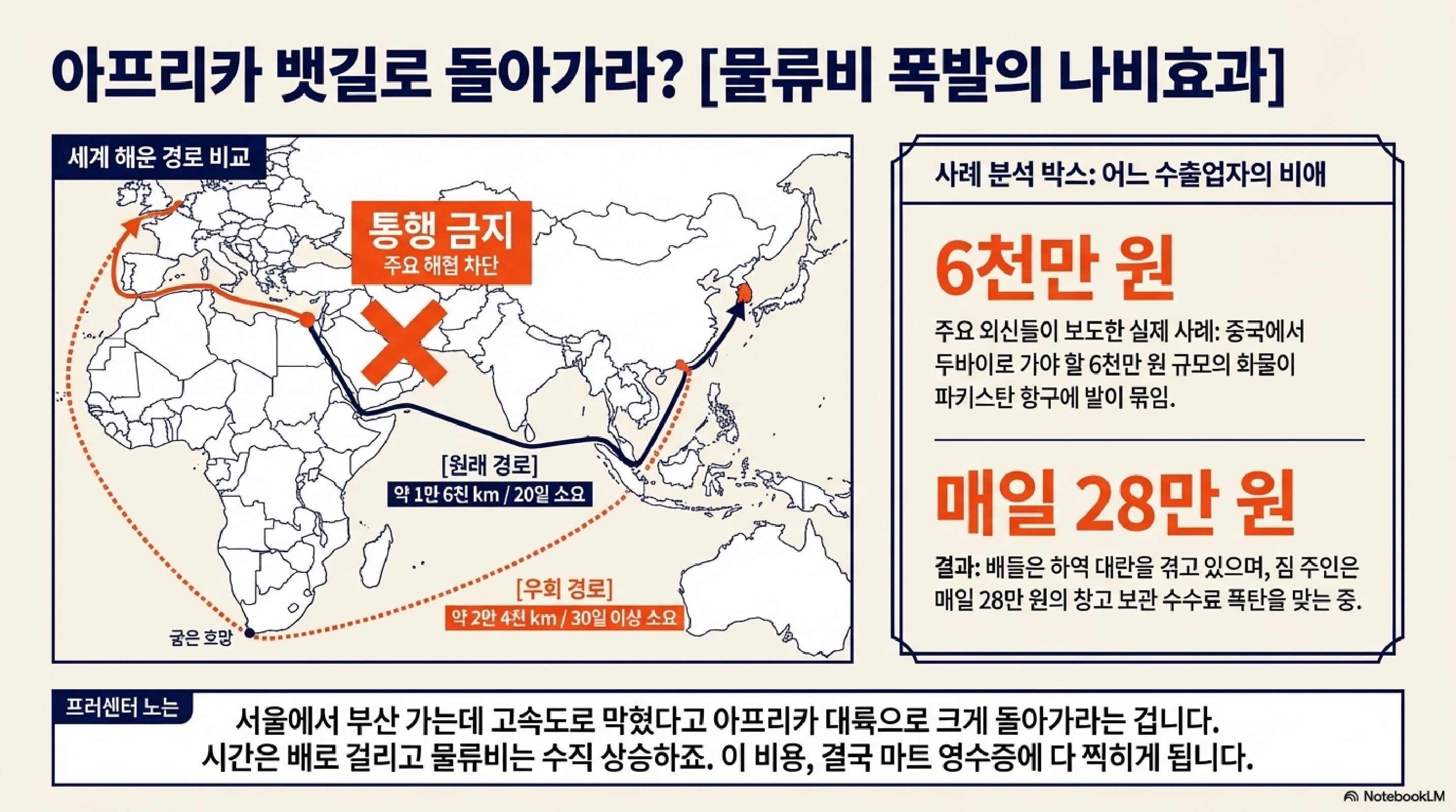 자, 그런데 이 전쟁이 단순히 기름값만 올리는 게 아닙니다. 여러분의 택배가 지금 어디서 썩고 있는지 보시죠.